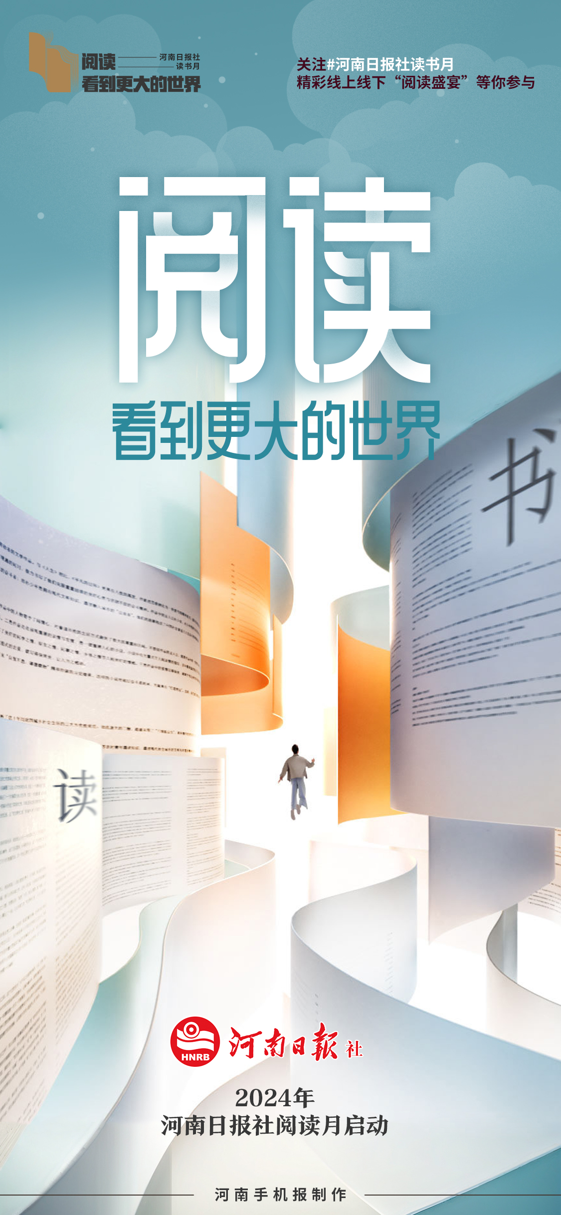 翻开一本书,就像是春风拂过面颊。4月8日,“阅读,看到更大的世界——2024河南日报社读书月”系列活动正式启动,各类读书活动轮番登场,为读者朋友们带来一整月的书香饕餮盛宴。2024当代文学颁奖盛典也将在本月底压轴亮相。这个春天,让我们一起把书种进每个人心里,等待灵感的发芽,直至步步生花。