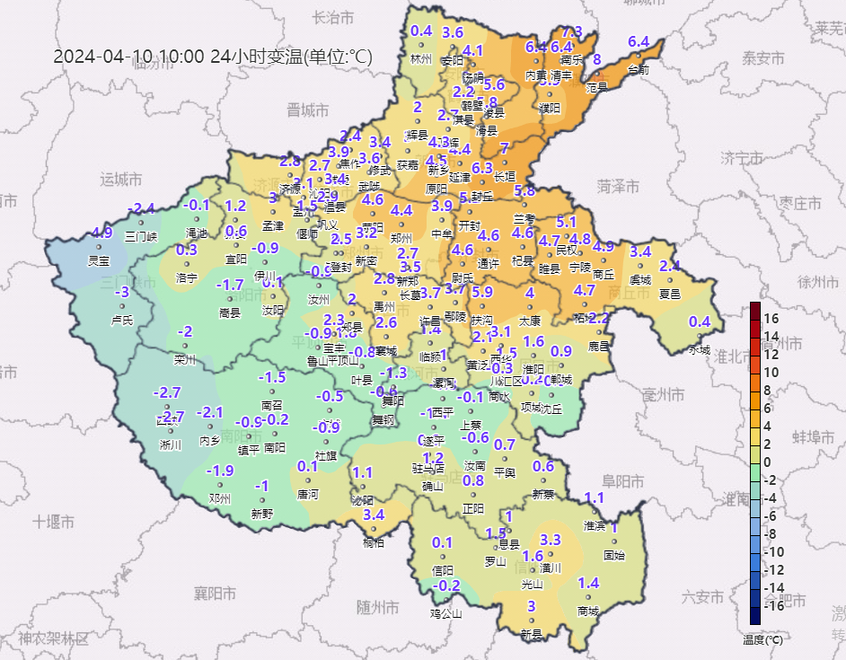 预报来源:河南省气象台2024年4月10日12时预报