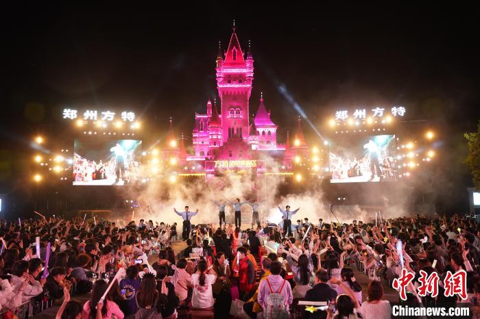 “五一”假期,游客欢聚郑州方特旅游度假区畅享初夏夜狂欢。刘丙龙 摄