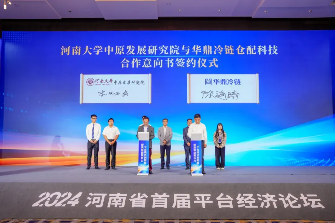此外,河南省委政策研究室研究员徐大海与华鼎冷链科技董事长助理陈海涛,共同为华鼎平台经济研究中心揭牌,这标志着河南成立了首个以平台经济为研究方向的民间智库机构。随后,河南大学中原发展研究院与华鼎冷链科技也进行签约,双方将联合专业研究力量,开展更具有实践意义的平台经济、枢纽经济的发展研究,更好地服务于社会经济建设。