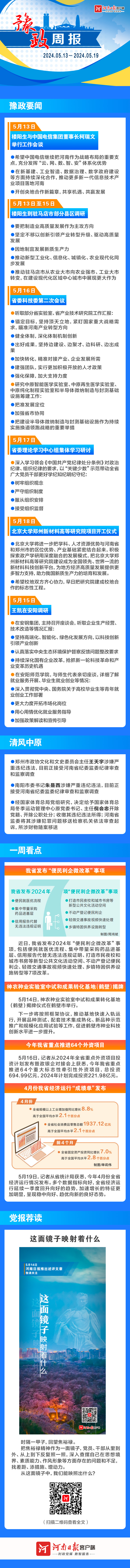 上周,省委科技委第二次会议研究省实验室、省产业技术研究院建设运行等工作;省委理论学习中心组围绕《中国共产党纪律处分条例》举行集体学习;北京大学郑州新材料高等研究院正式开建;时隔一甲子,回望焦裕禄,斯人如镜,精神璀璨如初......一周政经大事,快来关注!