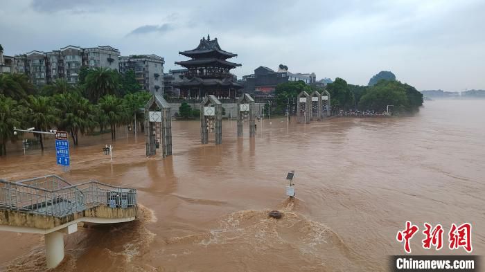 据水文气象资料显示,19日11时,桂林水文站水位达到147.8米(警戒水位146米),预计16时将出现148.5米的洪峰水位。