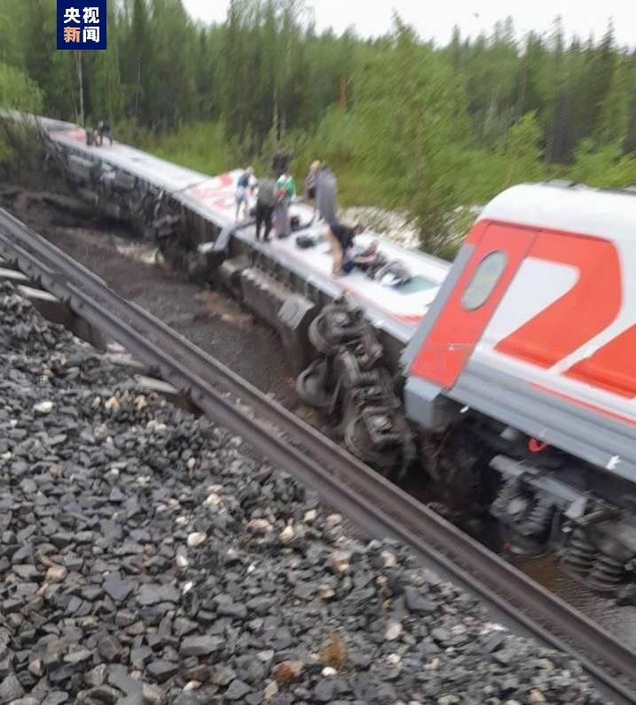 根据俄罗斯国家铁路公司公布的消息,当地时间6月26日,由沃尔库塔至新罗西斯克的511次客运列车的9节车厢在运行时脱轨。(总台记者 徐鸿波)