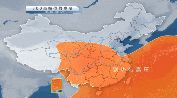 随着22日大陆高压和副热带高压的打通