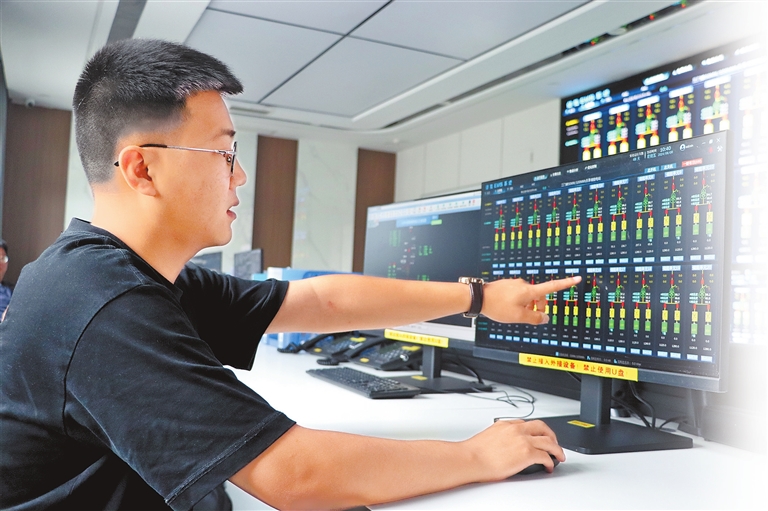 8月8日,刘禹辛正在对MES界面储能单元进行信息实时监控。郭丽鹏 摄