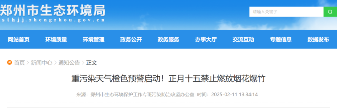 根据省、市空气质量预测预报及会商结果,2月11日起,郑州市整体扩散条件转差,空气质量以中、重度污染为主。按照《郑州市人民政府办公厅关于印发郑州市重污染天气应急预案的通知》(郑政办〔2023〕43号),经研究决定发布重污染天气橙色预警,自2025年2月11日0时启动重污染天气Ⅱ级响应,解除时间另行通知。根据郑州市政府《关于加强2025年春节期间烟花爆竹安全管理的通告》等相关规定,在重污染天气期间,郑州市全域全时段禁止燃放烟花爆竹。所以,元宵节期间郑州禁止燃放烟花爆竹。