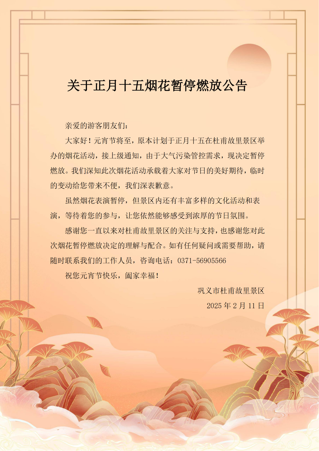 另外,河南交通广播记者还了解到,只有河南戏剧幻城和巩义市杜甫故里景区都于昨天发布了关于正月十五烟花临时取消或暂停燃放公告。提醒奔着烟花秀去的市民要早做规划,避免跑空。