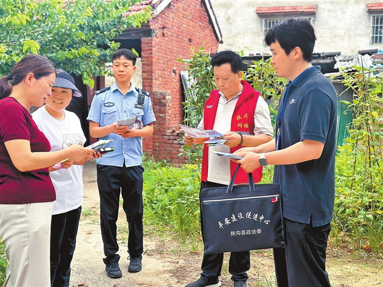 扶沟县平安建设促进中心工作人员在基层开展日常走访巡查。 张保霞 摄