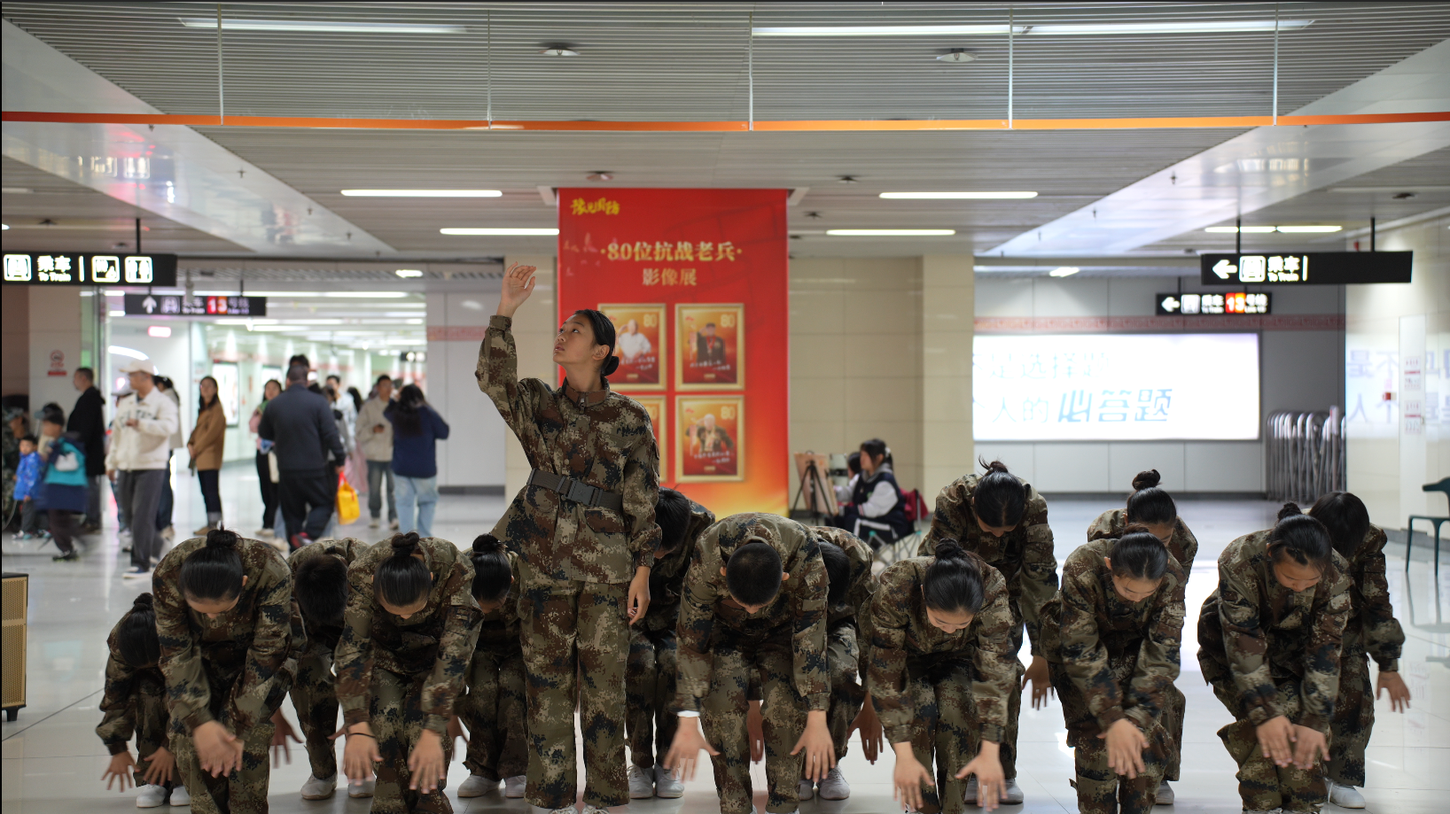 更令人动容的,是金水区金沙小学的学生在二七广场站表演的国防舞蹈《向后转》,孩子们目光坚定,舞姿有力,用舞蹈演绎卫国戍边烈士们为国捐躯的感人场景。带队的马老师介绍,他编排这支舞蹈的初衷就是让学生们认识到烈士们的爱国精神,“没有英烈的牺牲奉献,哪有这繁华盛世,努力学习、奋发有为就是对烈士最好的告慰。”