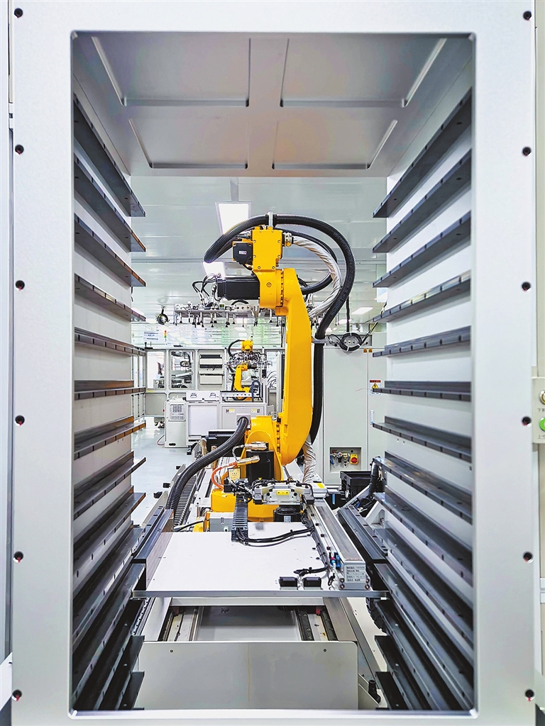 郑州兴航科技有限公司生产车间全自动芯片封装生产线。 河南日报社全媒体记者 徐聪 摄