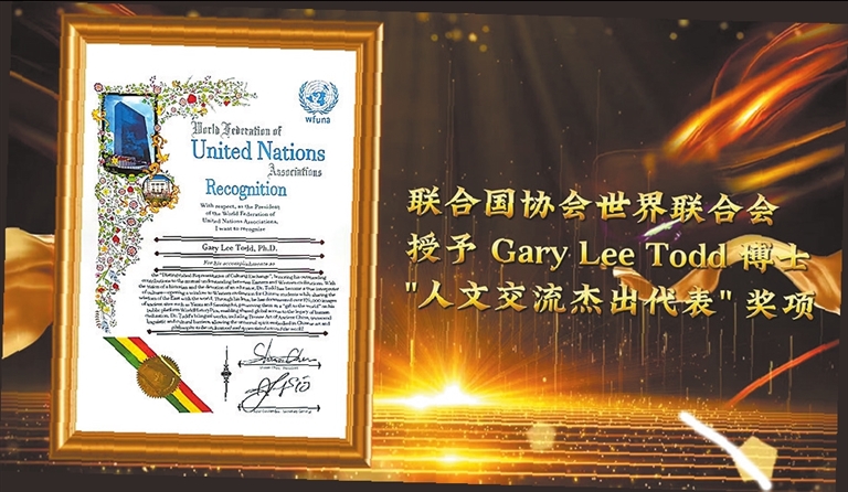 盖瑞生于大洋彼岸,却将半生心血倾注于中原热土,架起民心相通的桥梁,成为中美民间友好的典范。2025年,联合国协会世界联合会授予他“人文交流杰出代表”奖项。