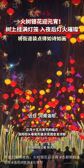 近日,洛阳千盏灯笼映夜色,火树银花迎元宵。图片来源:洛阳日报