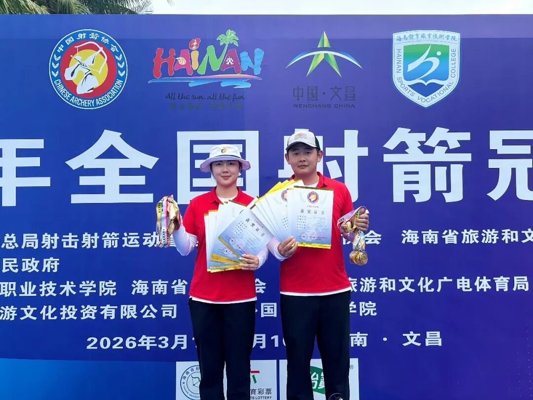 大河网讯 3月10日,记者从河南省射击射箭运动中心获悉,在9日于海南文昌高隆湾射箭基地落幕的2026年全国射箭冠军赛上,河南选手史靖宇、马舒佳发挥出色,两人搭档勇夺复合弓混合团体金牌。另外,这对河南组合还获得了混合团体第二淘汰轮冠军。史靖宇还与队友薛征、铁培熙合作拿下复合弓男子团体第一淘汰轮以及男子个人第二淘汰轮两项冠军。