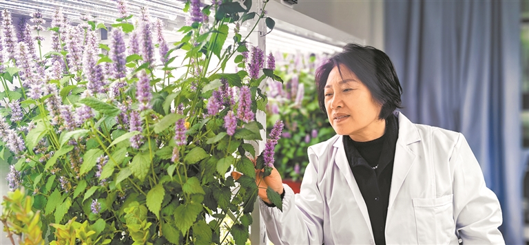 省农科院中药材研究所所长梁慧珍研究员在实验室察看培育的中药材。本报全媒体记者 尹江勇 摄