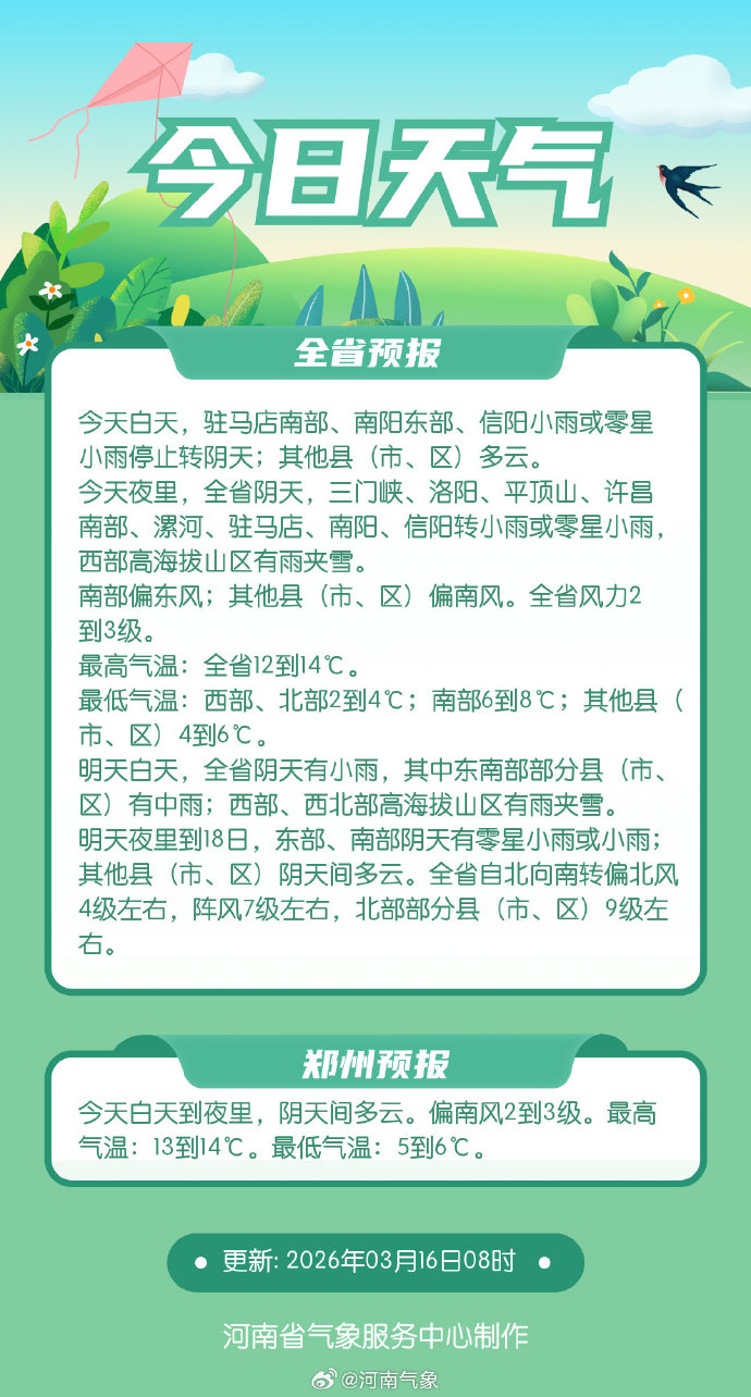 今天(3月16日),河南并未如期迎来春和景明,反而陷入了连绵的阴雨节奏。受持续的短波槽活动影响,这场从周末开始的降水过程在今天不仅没有收尾,反而呈现出由南向北逐步渗透的态势。对于全省大部分地区的居民来说,今天出门,“伞”依旧是必需品。