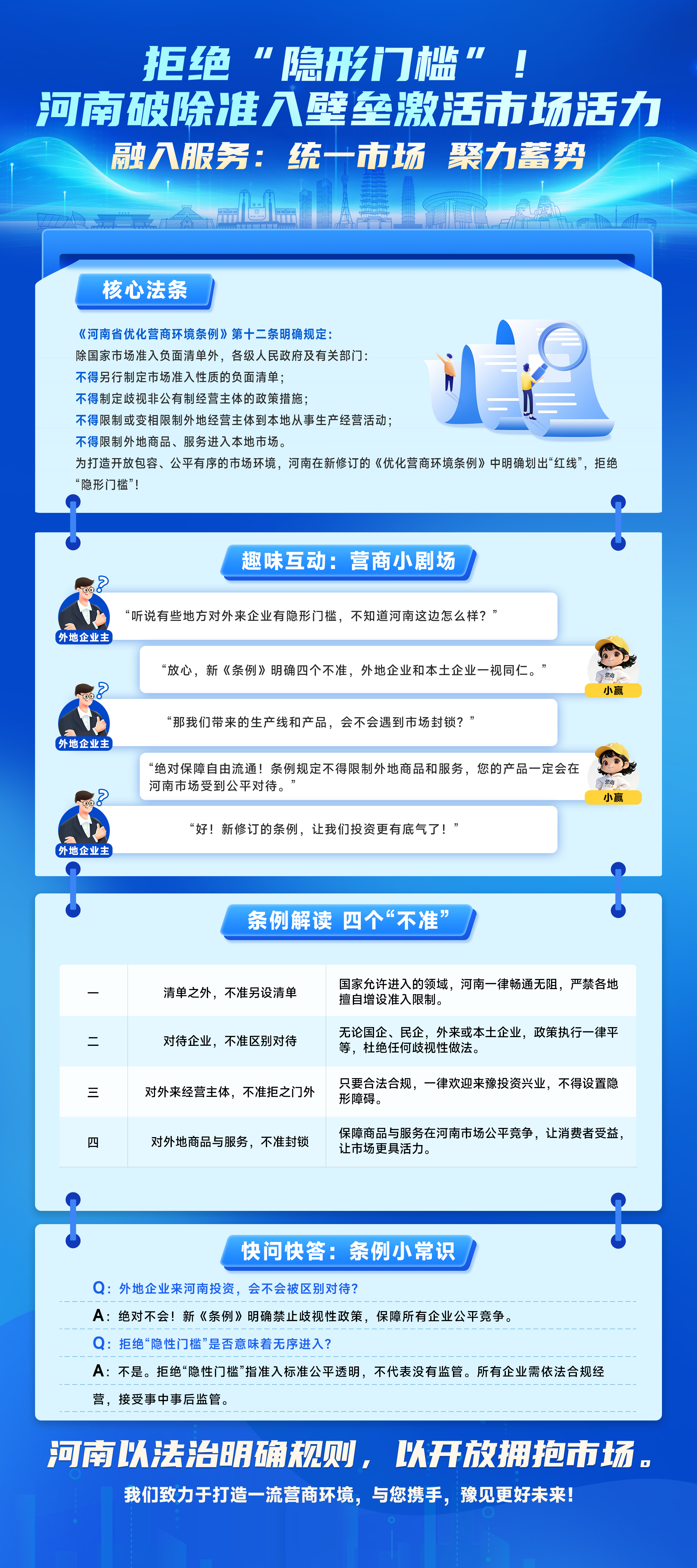 为让这份“惠企红利”真正走进经营主体、落到实处,省发展改革委联合大河网特别推出《营商小剧场》系列图解,让各类经营主体读懂、用好《条例》,明晰自身权利与保障,也让更多人看到河南持续优化营商环境的诚意与行动。