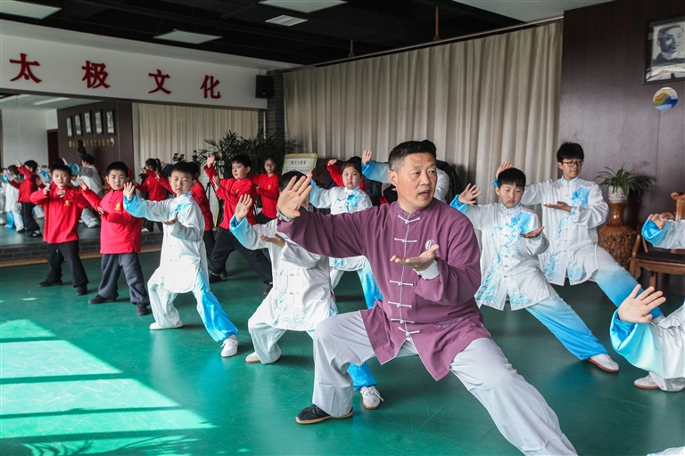 3月21日,在陈家沟太极拳馆博爱分馆,教练带领学员练习太极拳。程全 摄