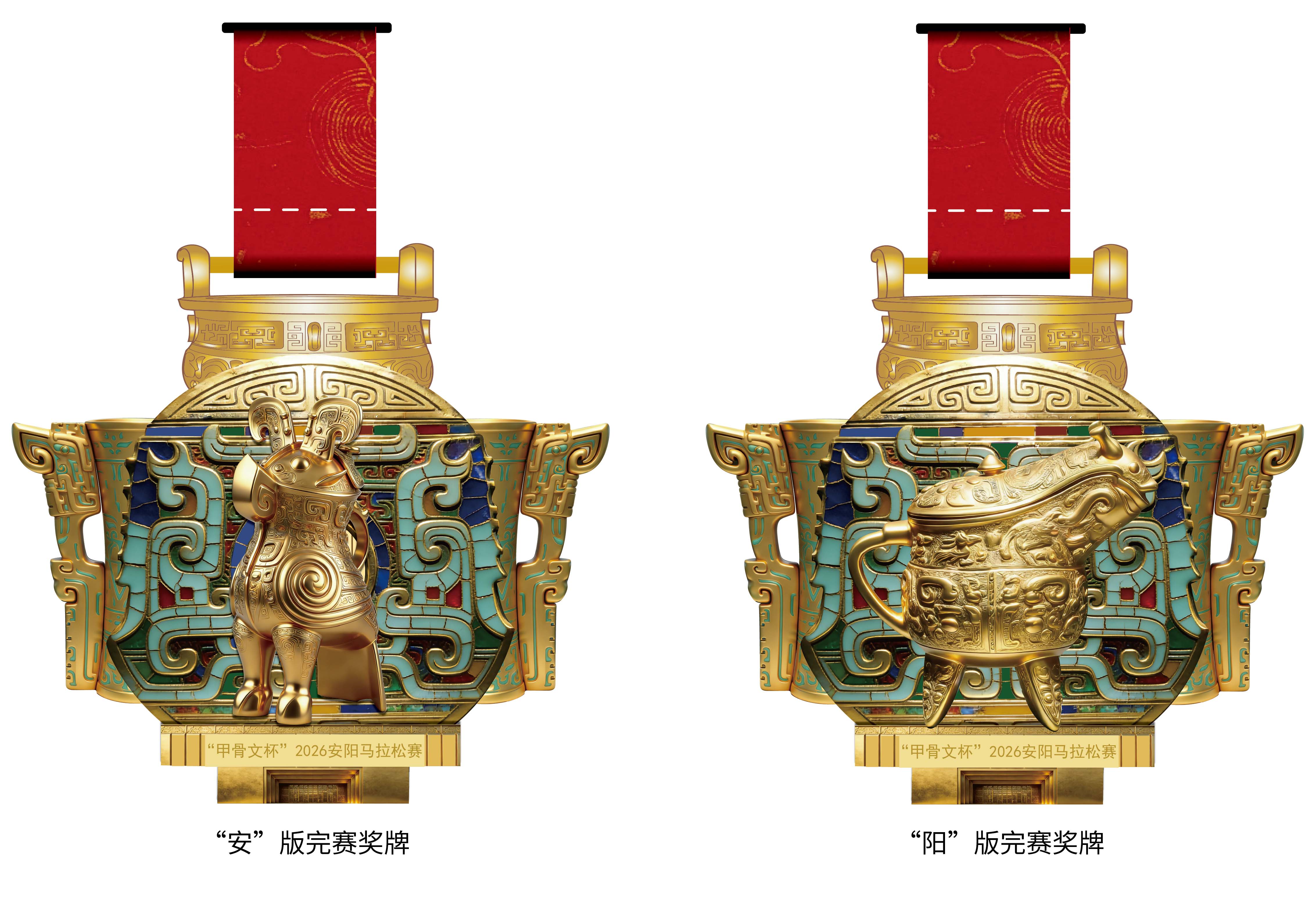 2026安阳马拉松“安”版和“阳”版奖牌设计图
