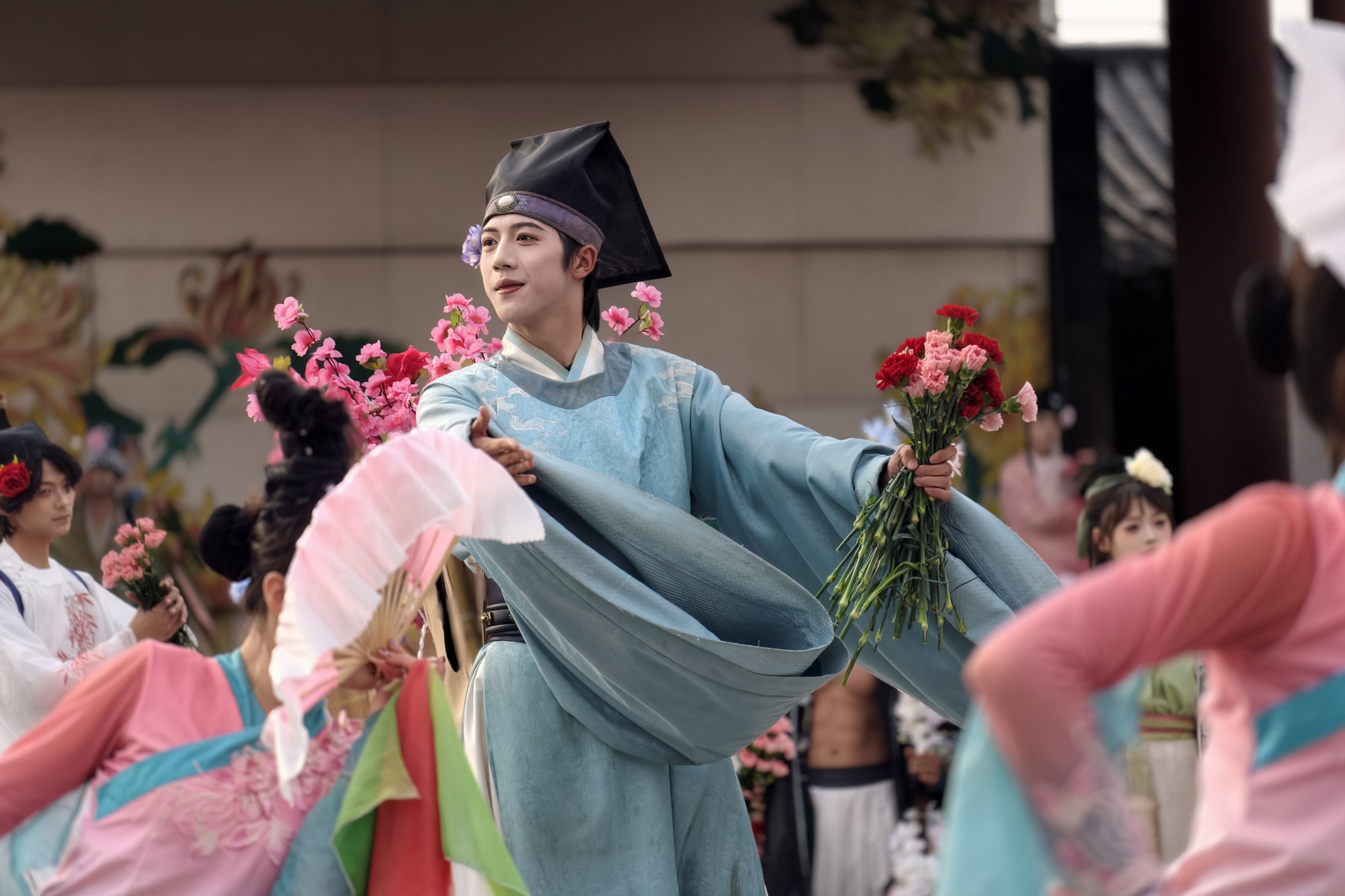 “满城俱是看花人”,是怎样一幅画面?园区挖掘宋代簪花文化,将簪花民俗与景区演艺相结合,全新打造了“千人簪花大巡游”节目。簪花少年郎零距离互动,游客可以加入其中,穿戴免费租赁使用的巡游道具,感受宋代簪花的别样浪漫。