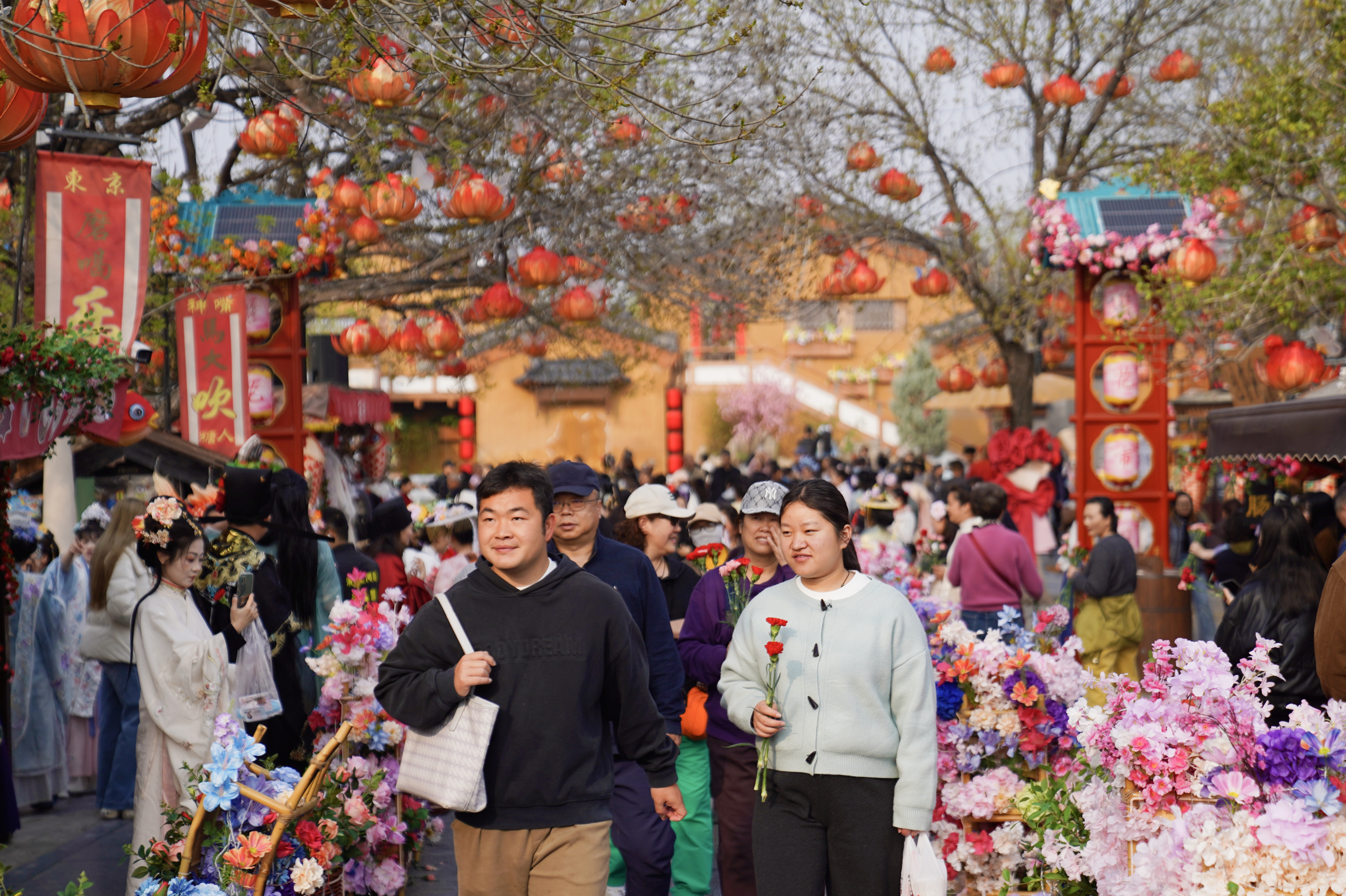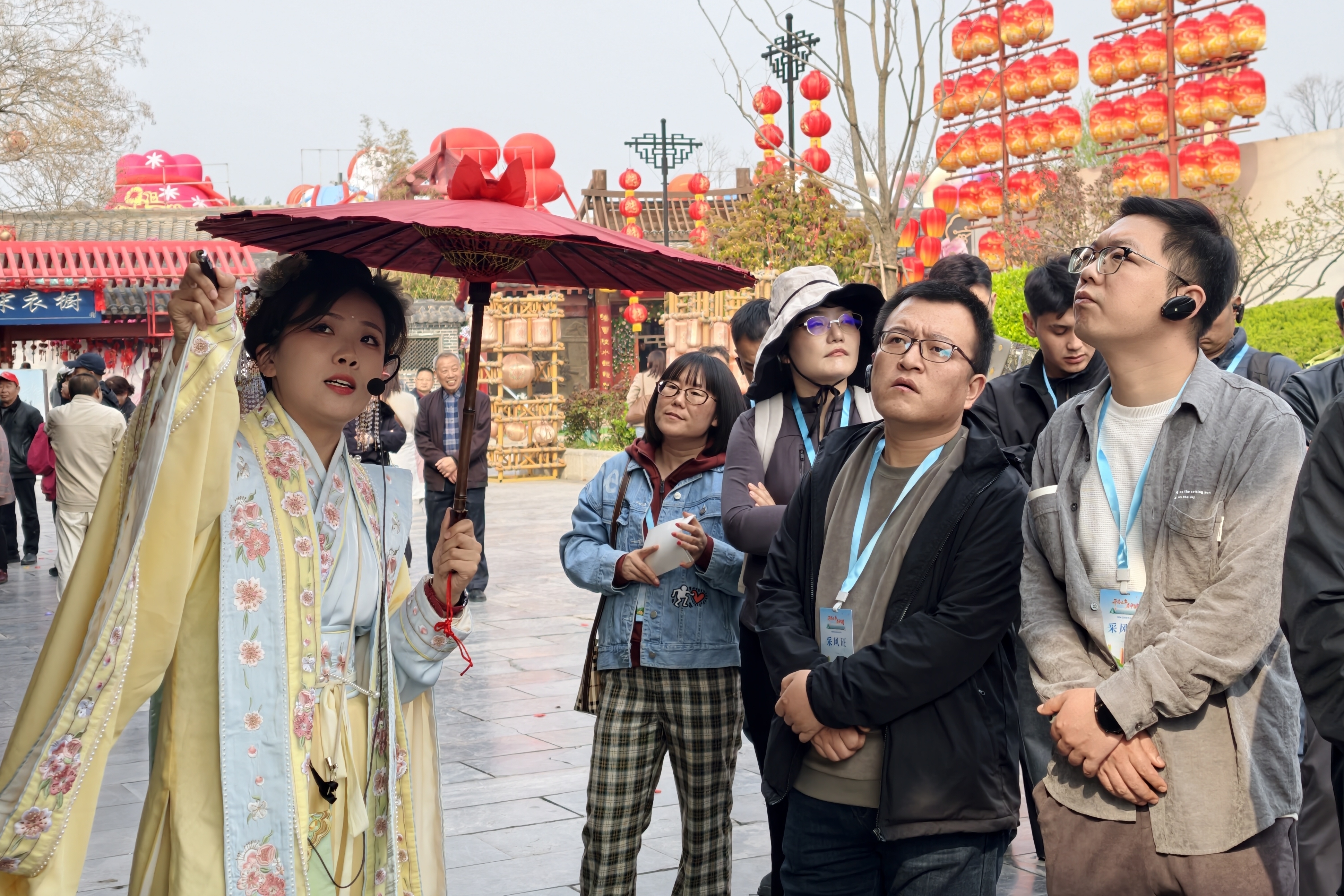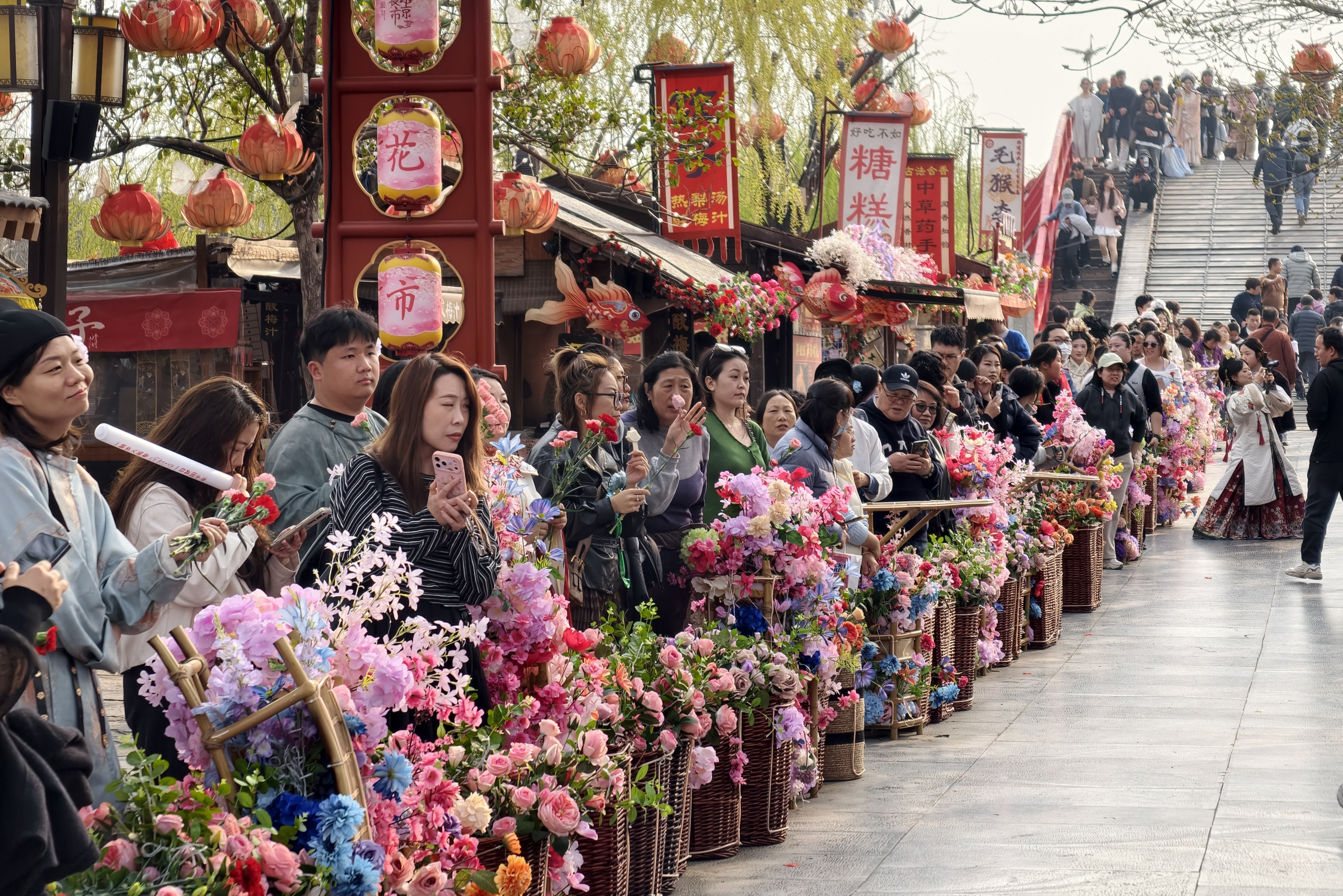 3月24日,“开局之年看中国·原来你是这样的河南”网络主题宣传活动“智绘文脉焕新彩”线路采风团走进清明上河园,逛了一把“大宋花市”。