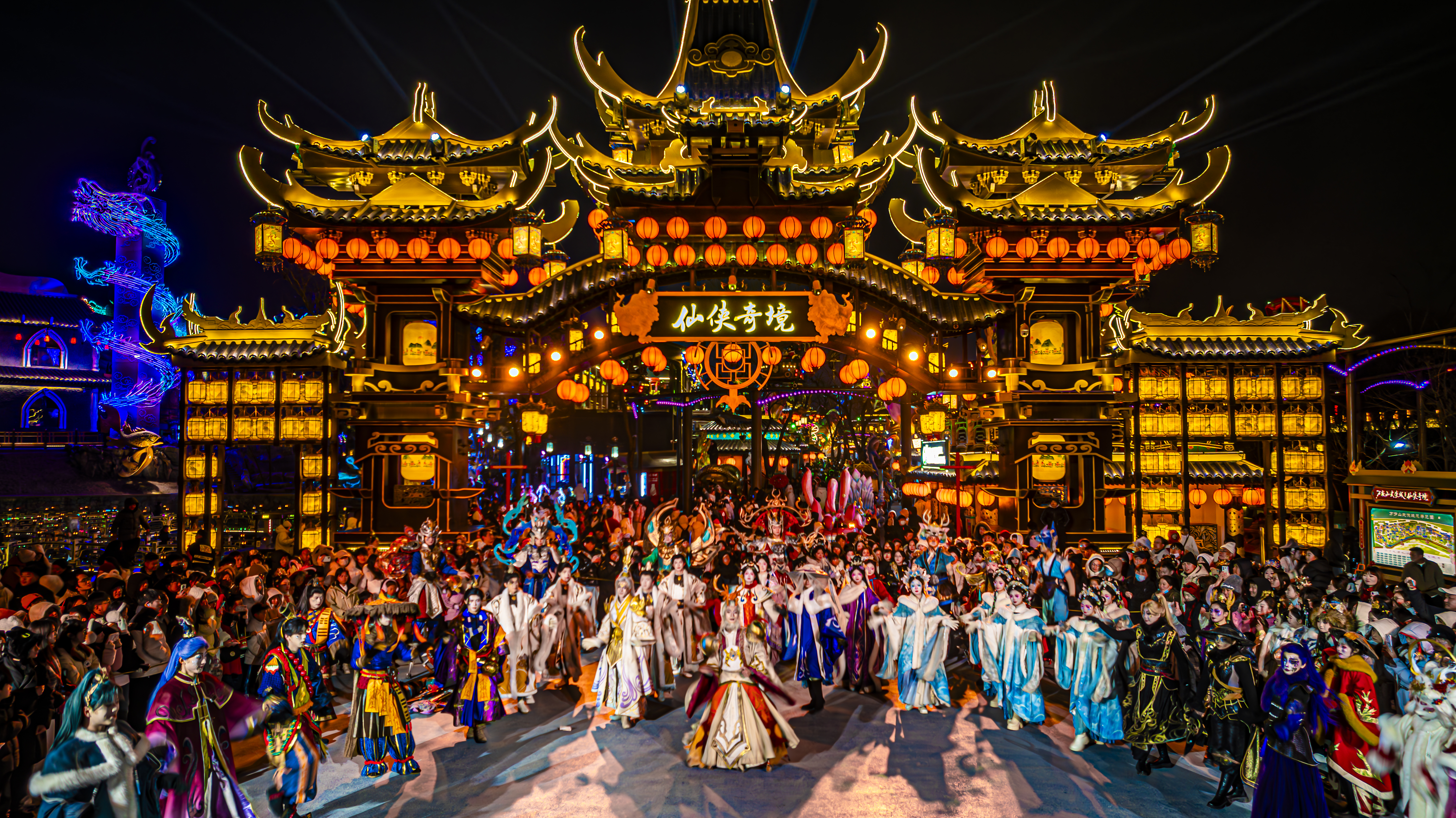 景区率先推出“三日无限次入园”模式,一张门票可在三天内随意进出。六大主题区域各具特色,每个区域都足以玩上一整天。2025年全新升级的“江湖狂欢艺术区”,上下两层贯通时尚潮流与休闲娱乐,月光瀑布光影秀、室内剧场演艺、江湖音乐节、百名NPC互动……每天百余场演出轮番上演。