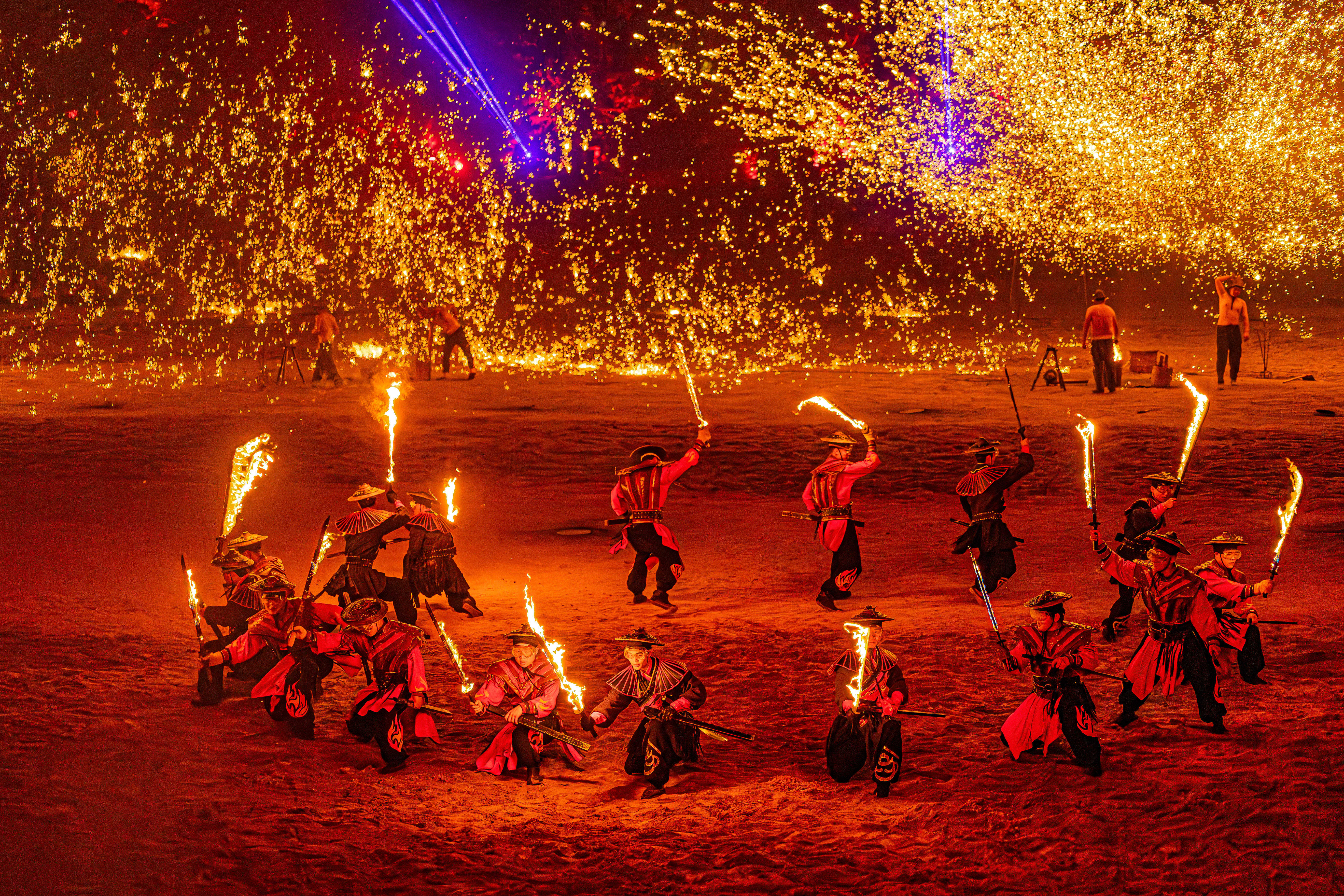 《三打祝家庄》的爆破特技、《仙侠巡游》的新奇有趣、《打铁花》的绚烂震撼……这份“比命还长的节目单”,构成了万岁山独有的快乐配方。