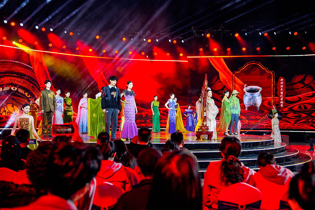 推介会分为“文明之源”“文脉之盛”“文旅之兴”“人文之暖”四个篇章。首篇以考古成果为脉络,三位“考古员”手持贾湖骨笛残片、仰韶彩陶残片、甲骨残片依次登场,引出器乐《华之声》、走秀《华之纹》、杂技《华之光》。河南博物院演奏家吹响复制自八千年前贾湖骨笛的乐器,悠远笛声穿越时空;中原工学院30名模特身着彩陶纹样时装,将远古符号转化为当代审美。