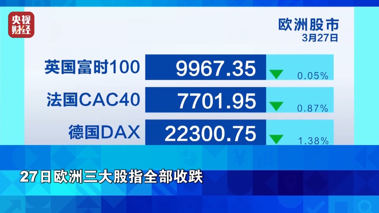 27日欧洲三大股指全部收跌