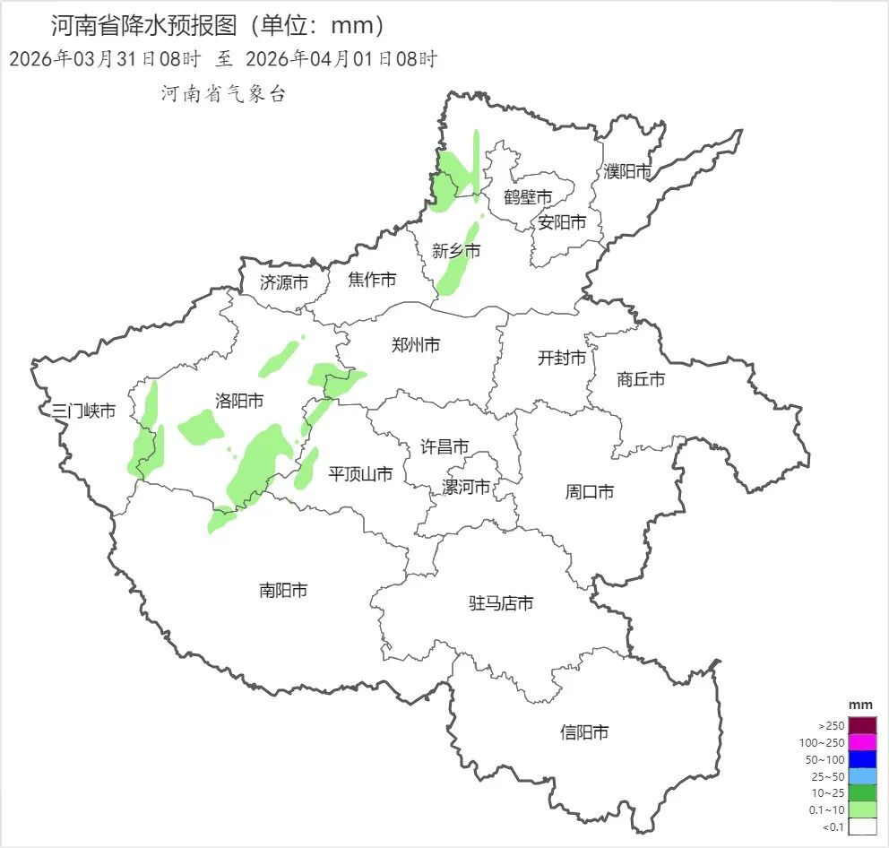 省会郑州今天阴天有小雨,东北风3到4级,阵风6级左右;31日多云转晴天;4月1日晴天间多云。
