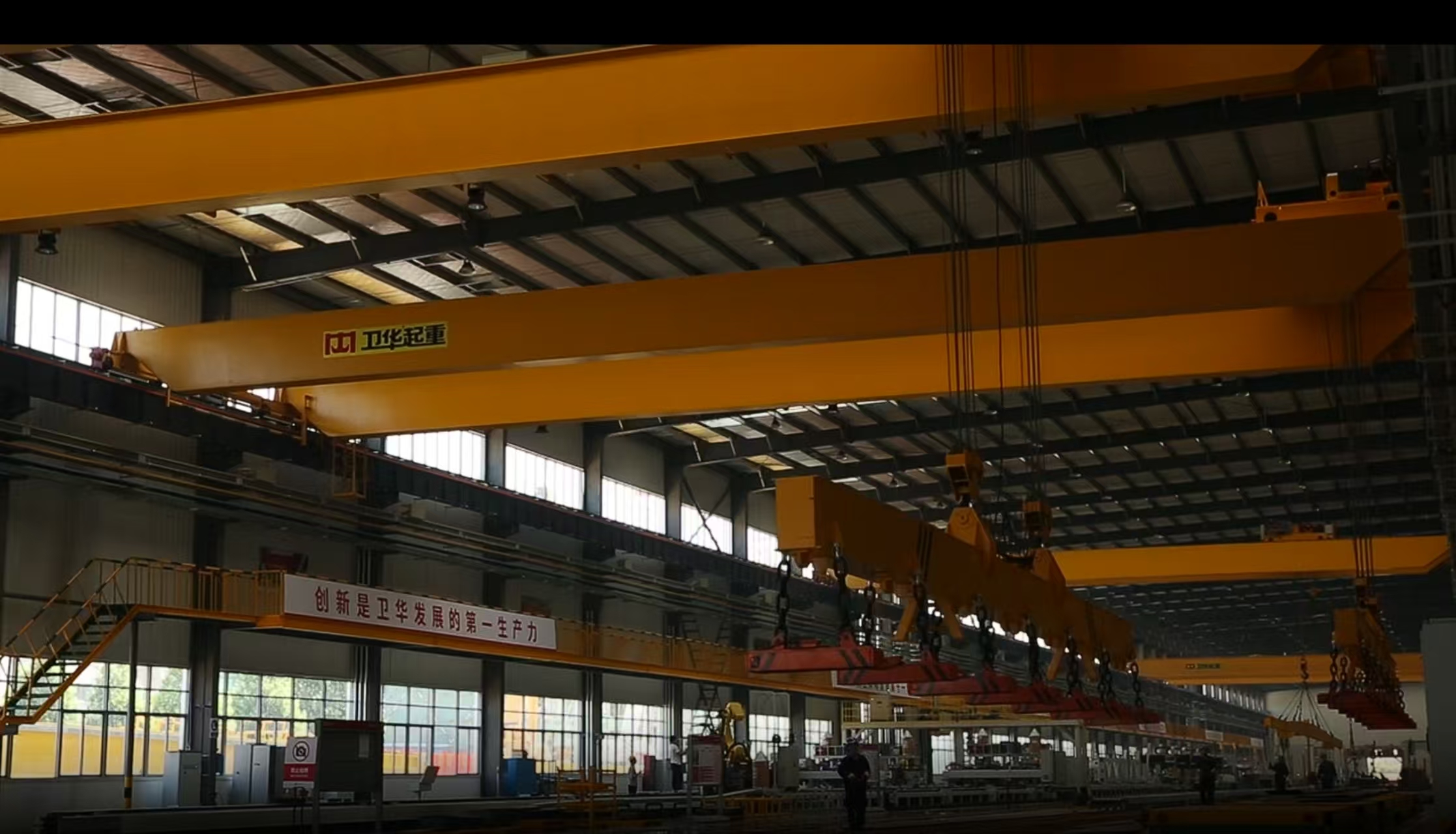 走进河南卫华生产车间,车间内正在加速生产,这里的产品投入使用后,可以轻松吊起最高3800吨的重量,把庞然大物变得很“轻”。