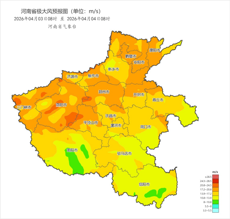 短暂间歇后,4月2日下午到夜里,全省大部又将迎来小雨或零星小雨。紧接着,3日,一股更强的冷空气将携大风沙尘席卷河南——全省西北风5级左右,阵风7到8级,中西部、北部局地风力可达9到10级,并伴有扬沙或浮尘。