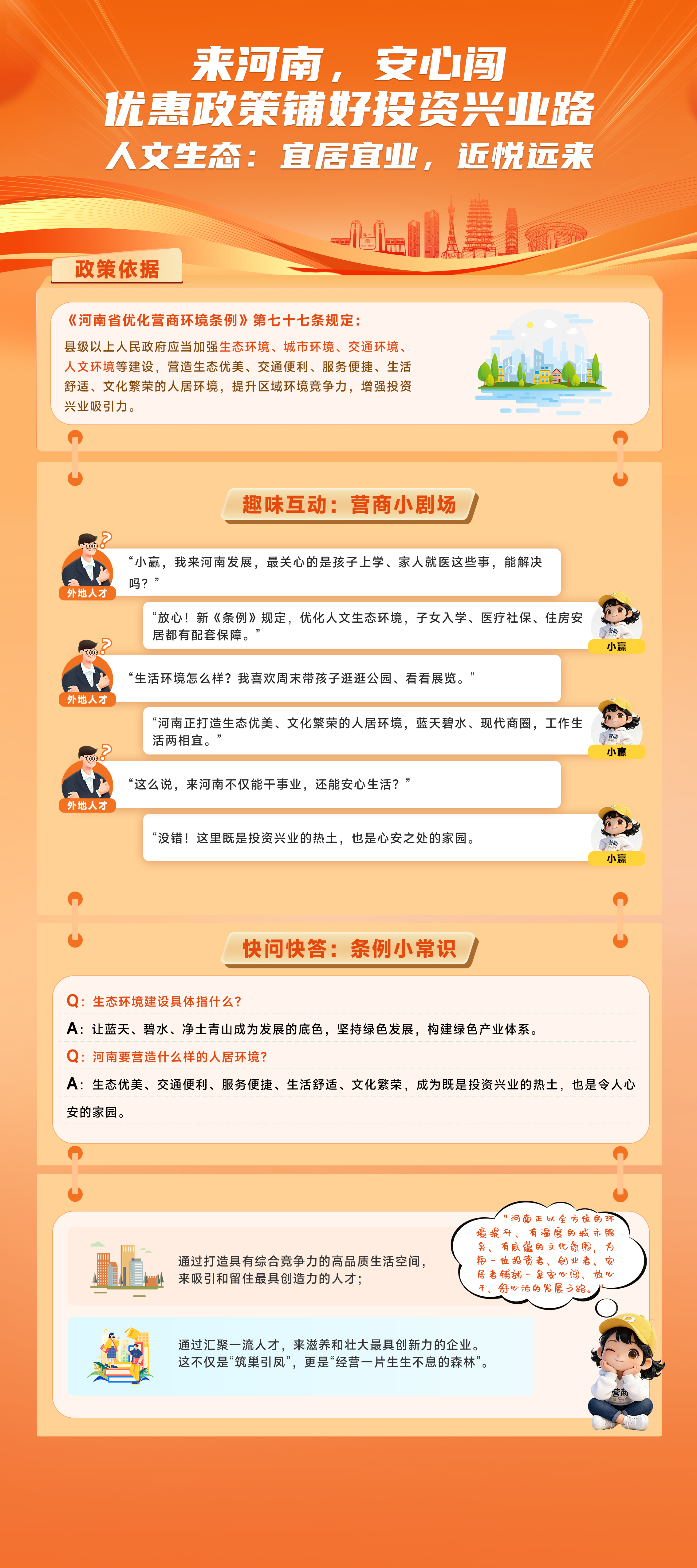 本期《营商小剧场》推出系列图解,聚焦《河南省优化营商环境条例》中推行“扫码入企”制度、优化人文生态环境等核心内容,一起看河南如何以制度为纲、以服务为魂,打消企业发展顾虑,筑牢企业成长根基。(田佳宁 李连凡 张一昊)