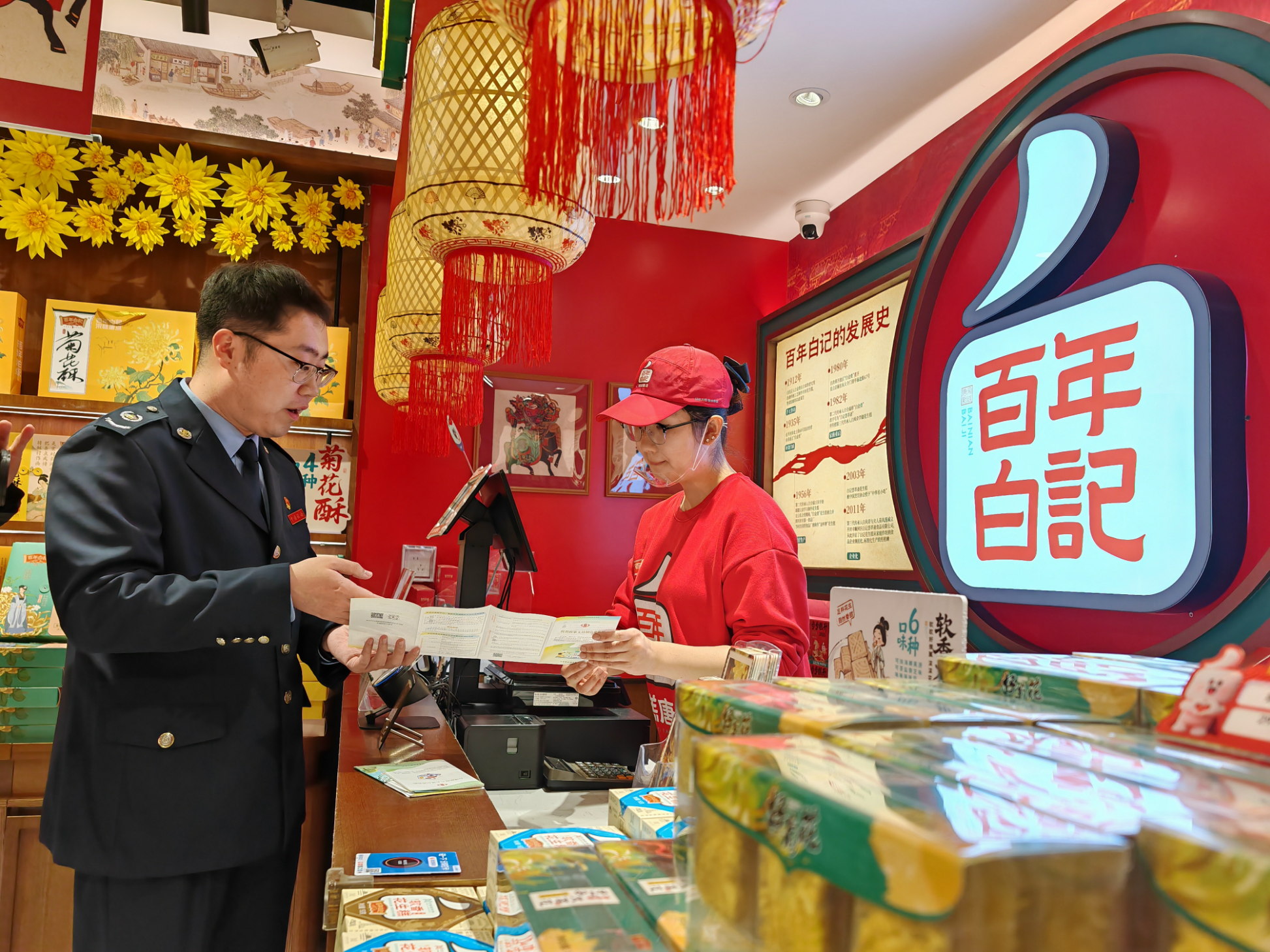 始创于1911年的京都老蔡记,作为省级非物质文化遗产代表性项目,在税务部门的精准辅导下,建立起全流程闭环式发票管理体系,严格落实“三流合一”,筑牢合规经营防线。“税务部门上门手把手辅导,帮我们打通了政策堵点,还让我们足额享受增值税全免优惠,让百年老店发展更有底气。”该品牌第四代传承人蔡雨萌说。据悉,活动开展以来,京都老蔡记开票量同比增长10%。