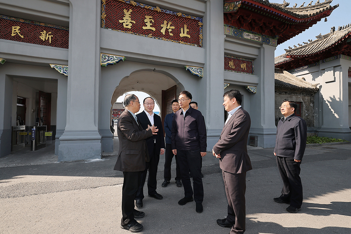 河南大学办学历史悠久,文学院和历史文化学院是建校之初就设立的两大院系。刘宁来到文学院,察看数字人文交叉创新研究平台与“新文科”建设情况,与近现代中国研究院院长陈平原深入交流,希望他带领团队聚焦时代重大命题,深化“两个结合”研究阐释,深耕现代中国与古文字、黄河文明、河洛文化等相关领域的学术研究,培养更多既有家国情怀又有国际视野的高素质人才。在历史文化学院,刘宁详细了解一流学科建设与高水平人才培养情况,强调要立足河南丰富的历史文化资源,加快打造特色鲜明、优势突出的学科体系,推出一批具有重大学术价值和社会影响的研究成果,为推动文化繁荣兴盛贡献智慧和力量。刘宁还来到南大门、河南留学欧美预备学校旧址等地,了解学校历史沿革,强调要把文物保护与校园建设、学科发展、人才培养紧密结合起来,深入挖掘历史故事和文化内涵,让这些承载着岁月记忆的历史文物焕发新生机新光彩。