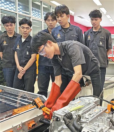 泰国东北皇家理工大学是泰国第一个开设新能源汽车专业的大学。在新能源汽车培训中心合作项目基础上,2025年10月该校与广汽国际泰国销售公司签署合作协议,在新能源车辆、电动汽车技术领域深入开展人才培养,将中国技术与制造标准引入泰国,打造泰中新能源学科与实训基地,提升泰国的产业竞争力。该校教师素帕措说,学校与中国企业联合开发专项课程及短期培训项目,学生未来进入在泰投资的中国汽车企业实习,还有机会获得正式就业岗位,“我们将把新能源汽车相关知识与经验推广到全国教育网络,让各地区都能共享成果,实现产业系统化、可持续发展”。