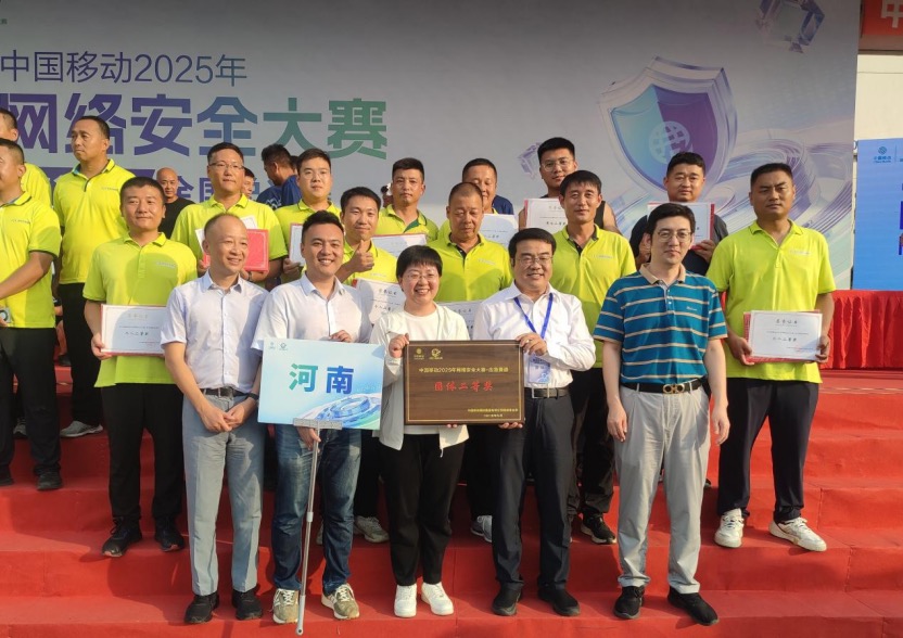这份敢拼敢干的劲头,让他一次次在关键时刻冲得上、打得赢。这份坚守,也为他赢得了沉甸甸的认可。2018年,他荣获平顶山市“五一劳动奖章”;同年和2020年,两次被河南省通信管理局评为“全省战备应急通信工作先进个人”;2023年、2025年,在工信部组织的行业技能比武中两次斩获团体与个人二等奖;在中国移动2025年网络安全大赛应急赛道中,他从全省竞赛一路拼进全国决赛,捧回多项荣誉。这些奖状被他整齐摆放在办公桌一角,不是用来炫耀,而是提醒自己——荣誉是肯定,更是继续前行的动力。