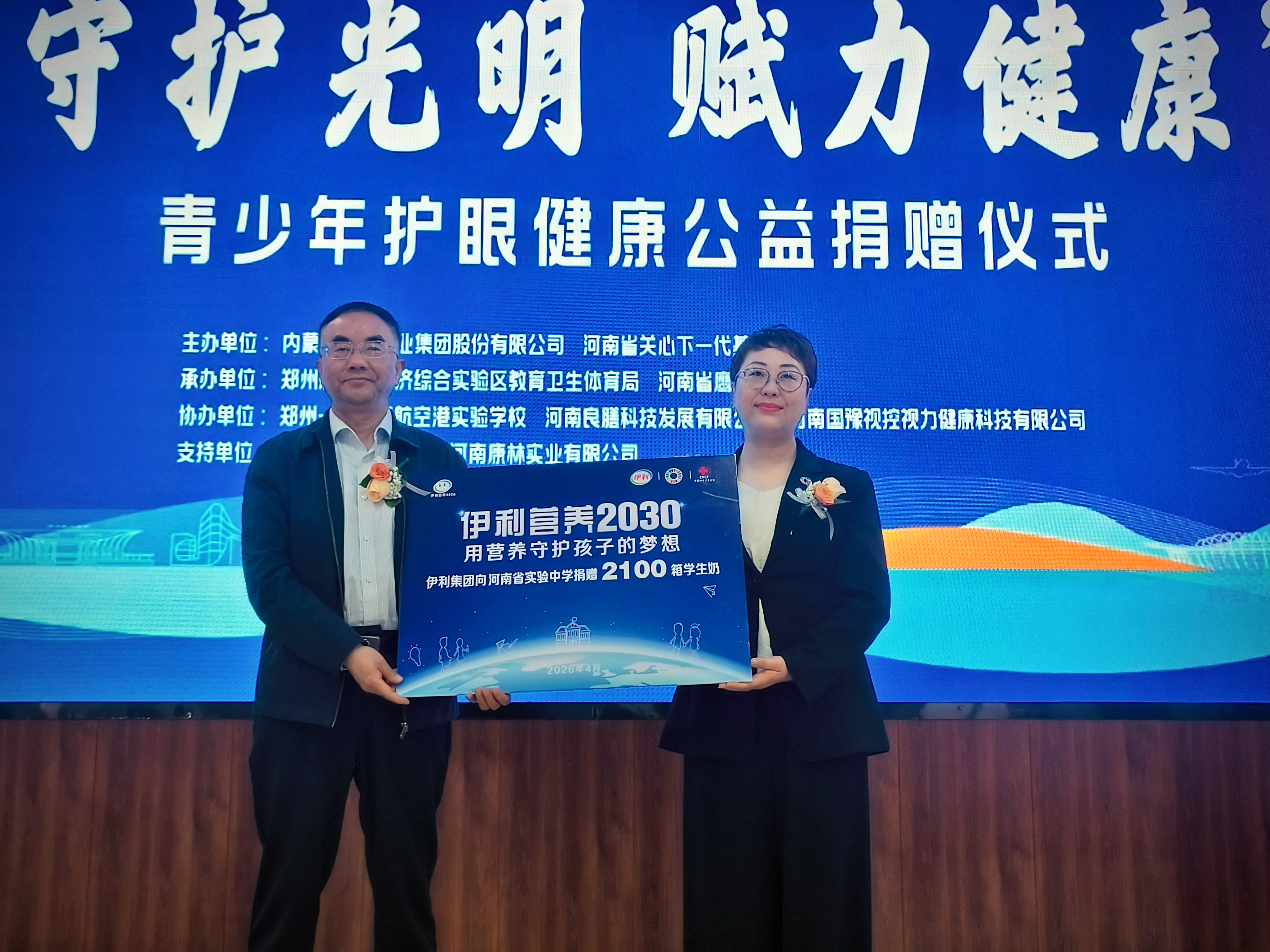 大河网讯 4月15日,“守护光明 赋力健康”青少年护眼健康公益捐赠仪式在位于郑州航空港区的郑州一中国际航空港实验学校举行。内蒙古伊利实业集团携手河南省关心下一代基金会,向郑州一中国际航空港实验学校及河南省实验中学捐赠一批营养牛奶与护眼贴。
