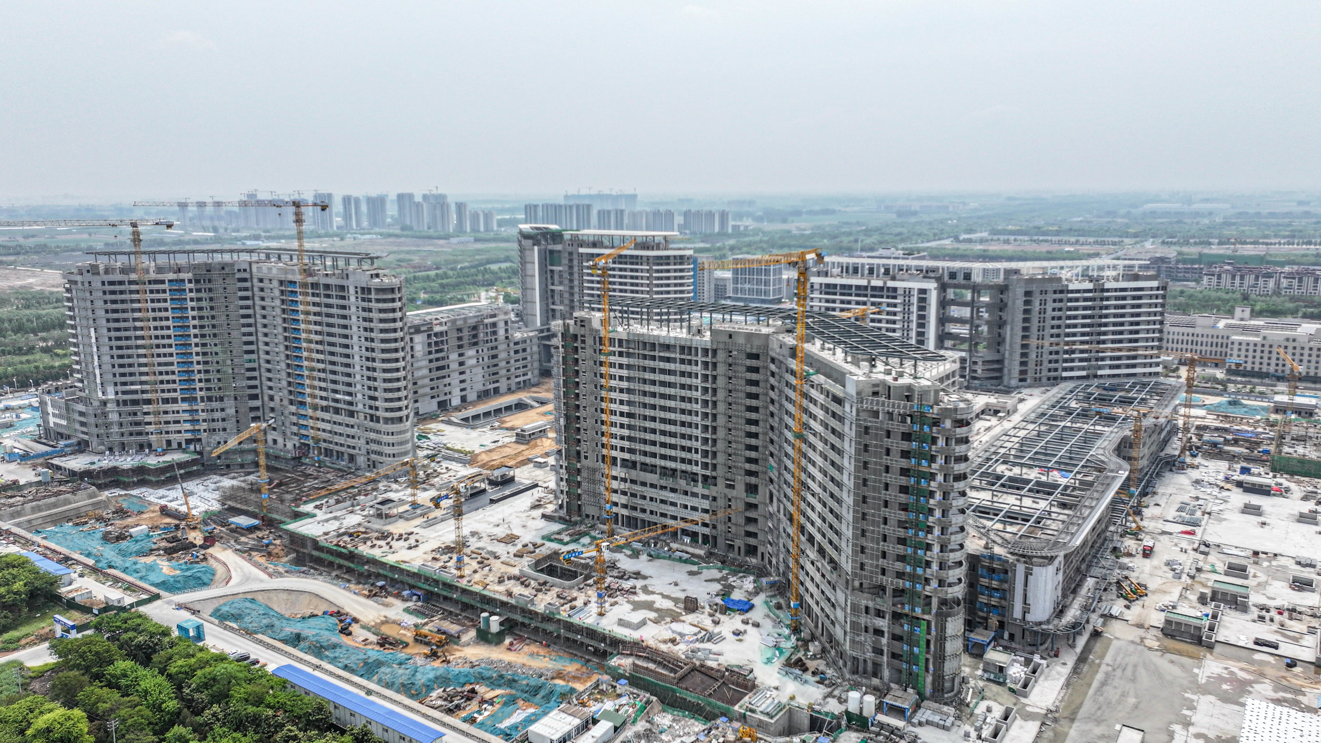 据了解,“两院一中心”项目是河南省重要医疗项目,主要建设的是中国医学科学院肿瘤医院河南医院、河南省人民医院南院区、河南省红十字血液中心。其中,项目一期是河南省红十字血液中心建设工程,已于2025年10月15日投入试运营;二期项目主要建设河南省人民医院南院区、中国医学科学院肿瘤医院河南医院,目前“两院”主体结构已全面封顶,正全力推进外立面和室内主管道安装施工。