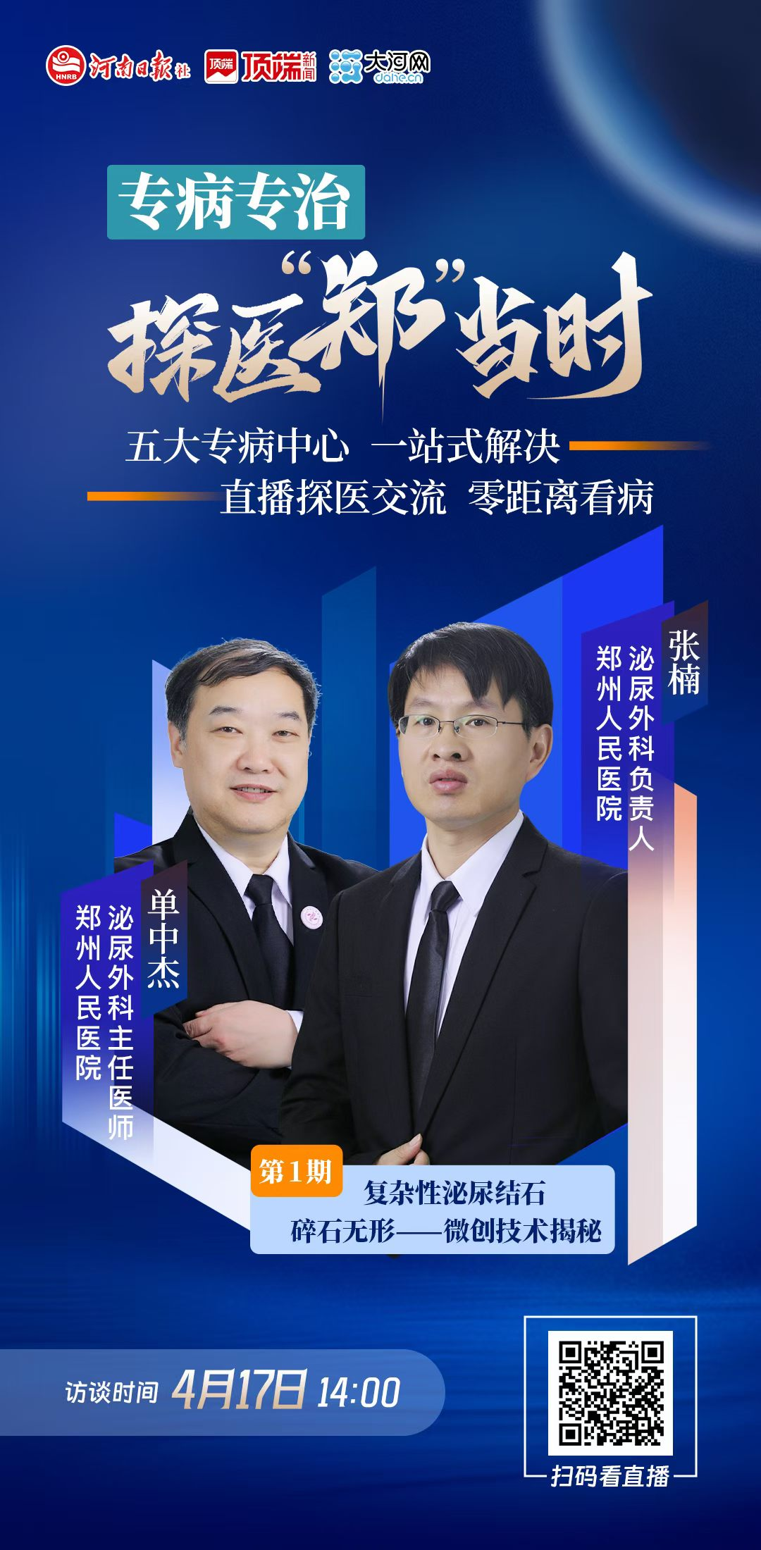 大河网讯 泌尿系结石发作有多痛?有人形容“比生孩子还疼”。发病率高、复发率高、痛感强,严重时还会损伤肾功能。4月17日,郑州人民医院泌尿外科负责人张楠,河南中医药大学泌尿研究所所长、郑州人民医院泌尿外科主任医师单中杰做客大河网直播间,围绕泌尿系结石微创治疗、泌尿健康科普以及膀胱癌创新技术等话题,与网友深入分享“干货”知识。