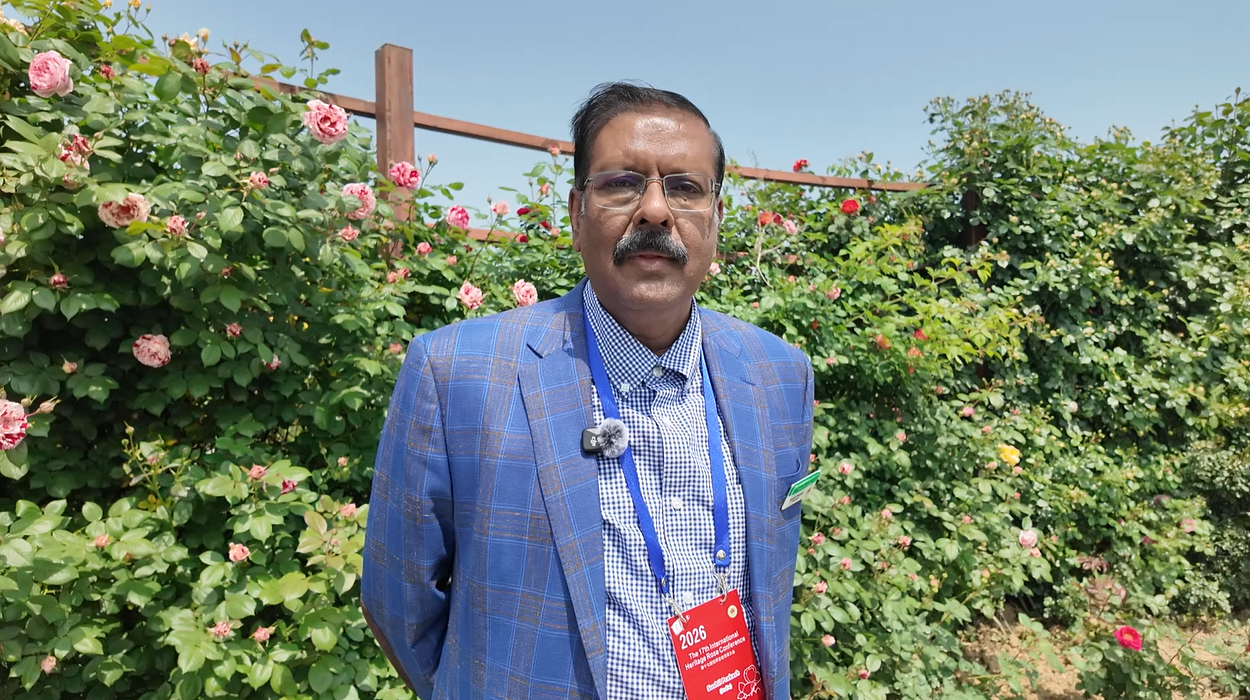 图为世界月季联合会主席苏希尔·普拉卡什。