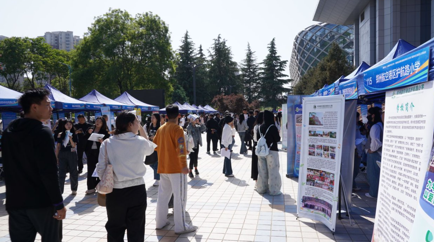 此次招聘会不仅吸引了陕西师范大学的学生,其他高校学子也慕名而来。河南大学2025届硕士研究生门乘阳所学专业是小学教育,他在网上得知招聘会信息后专程赶来。“去年我在航空港区实验小学实习过,那里环境好又宜居,所以过来看看。不光我自己,我和班里的同学一块来的。”门乘阳兴奋地说。