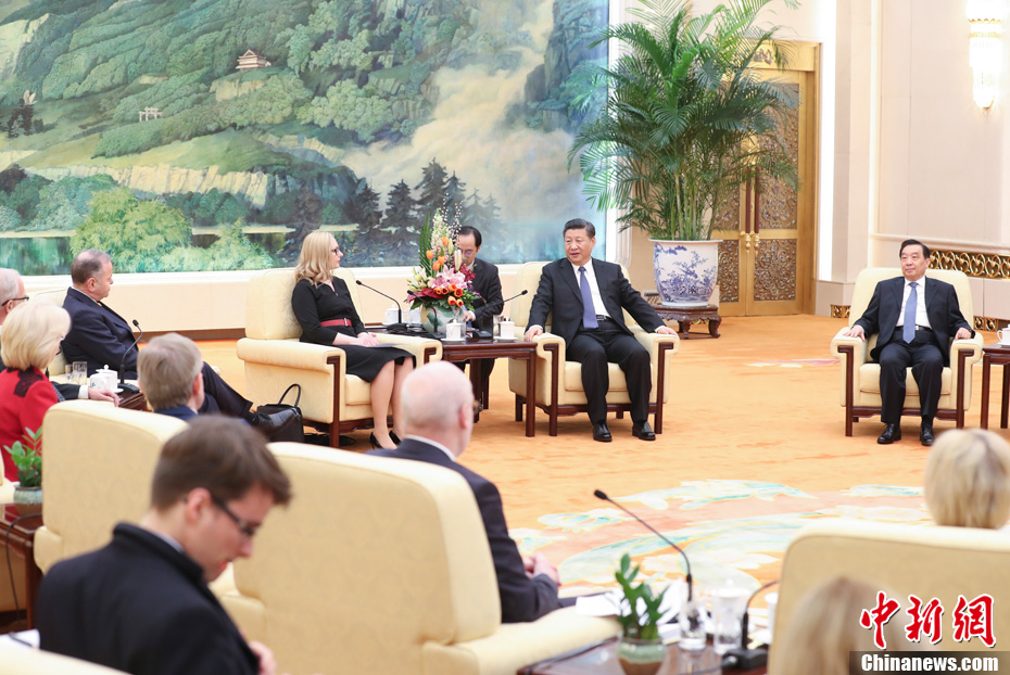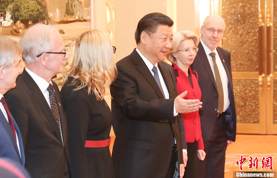 1月10日,中国国家主席习近平在北京人民大会堂集体会见北欧和波罗的海国家议会领导人。芬兰议长洛赫拉、挪威议长托马森、冰岛议长西格富松、爱沙尼亚议长内斯托尔、拉脱维亚议长穆尔涅采、立陶宛议长普兰茨凯蒂斯、瑞典第一副议长芬尼等参加会见。中新社记者 盛佳鹏 摄