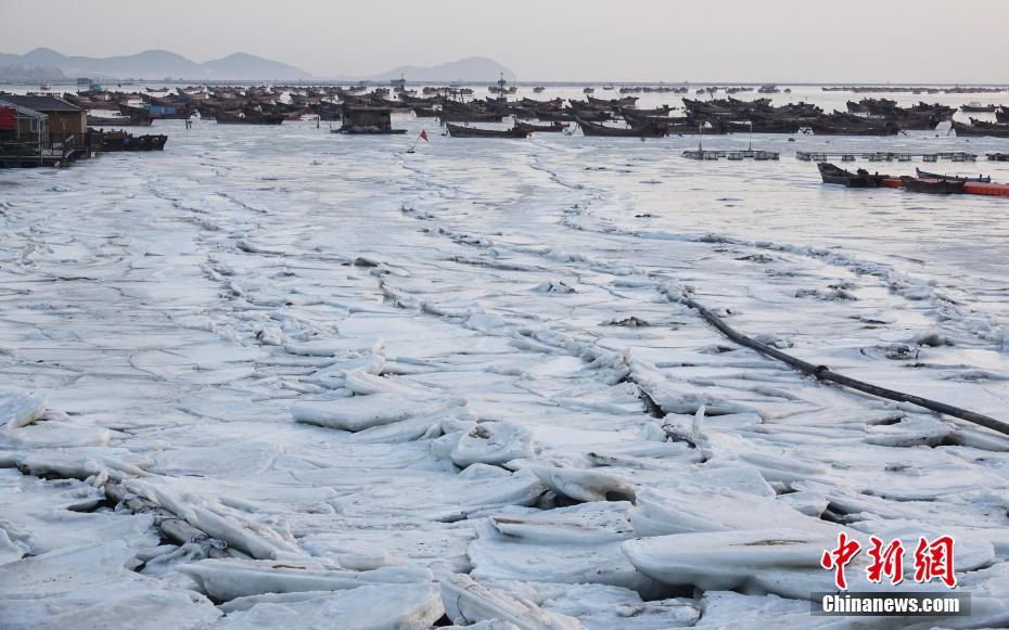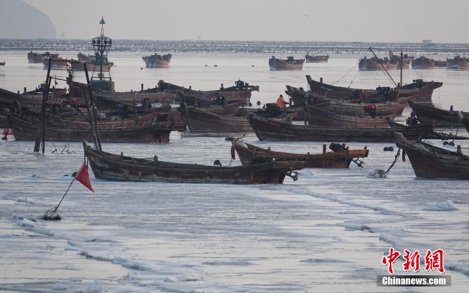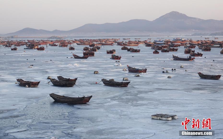 2月11日,辽宁省大连市金石滩渔港,结冰海域中的渔船被“冰封”。受持续低温天气影响,黄渤海进入了本年度严重冰期,给渔业生产带来不利影响。 中新社发 刘德斌 摄 图片来源:CNSPHOTO