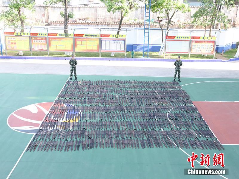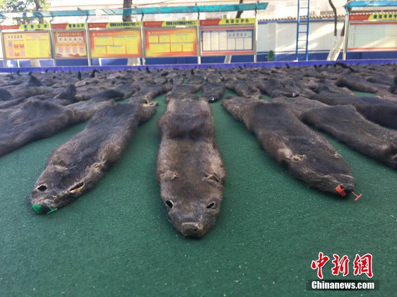 广西防城港查获水貂皮500张 摆满篮球场