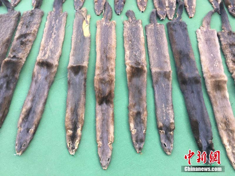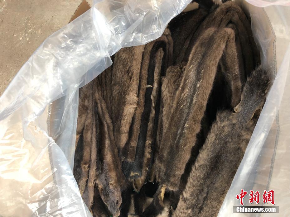 经清点,这批貂皮共500张,每张上下折叠,最大一张长约50厘米,宽约5厘米,重约400克;最小一张长约35厘米,宽约3厘米,重约300克,总重283.6公斤。 蒙艳翔 摄