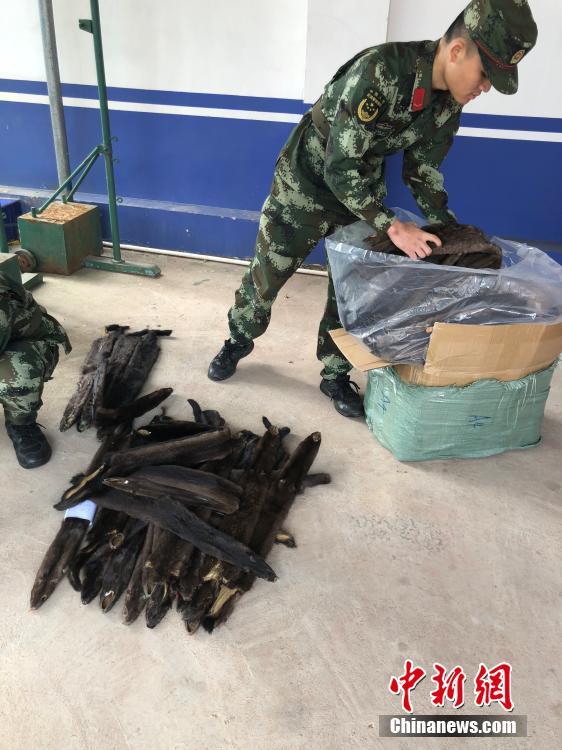 3月20日14时40分许,该站执勤官兵在检查岗两翼便道牛轭岭村巡逻时获悉,在该村靠近高速路的一座桥底下,有人在搬运可疑物品。该站立即组织官兵前往查缉,搬运货物人员见到官兵后,立即丢弃货物逃走,留下5个包裹严实的纸箱。 蒙艳翔 摄