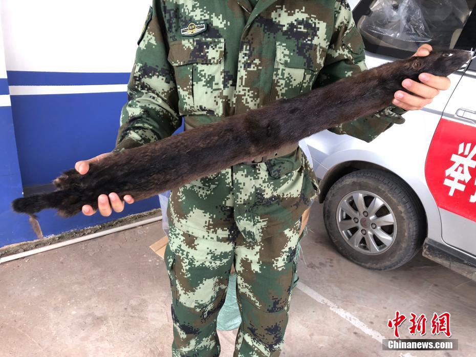 官兵立即开箱查验,发现每个纸箱里都用透明的塑料袋严实包裹着,官兵将塑料袋取出查看,里面竟是一张张细长的貂皮。经查看,这一批貂皮体形细长,毛色有黑褐色和浅褐色两种,疑似水貂皮。 蒙艳翔 摄