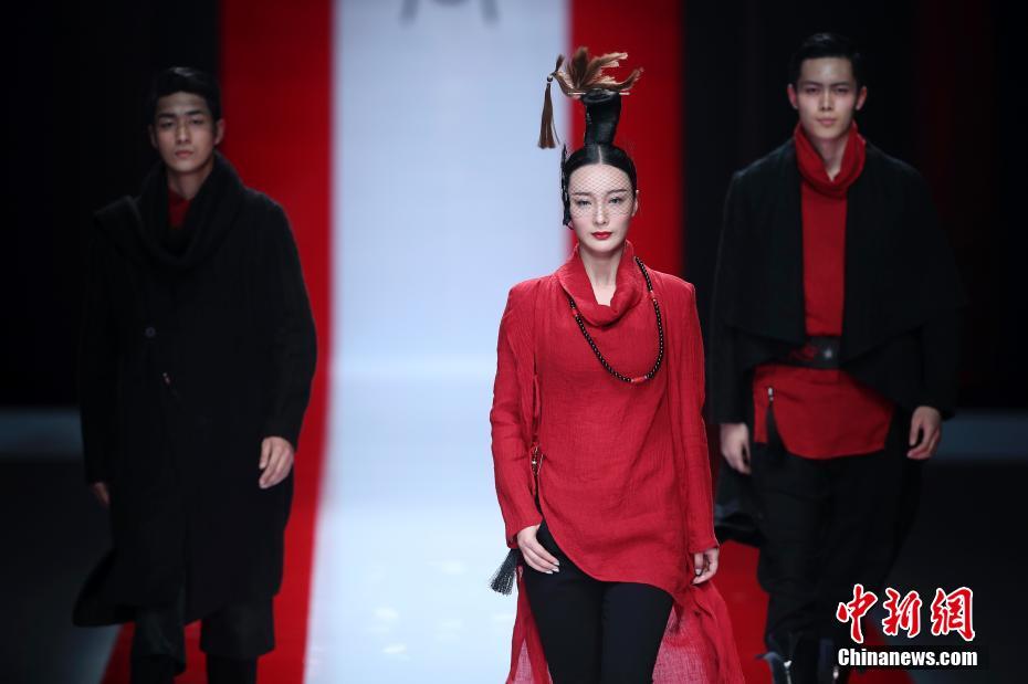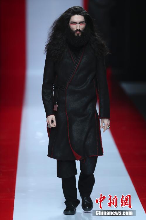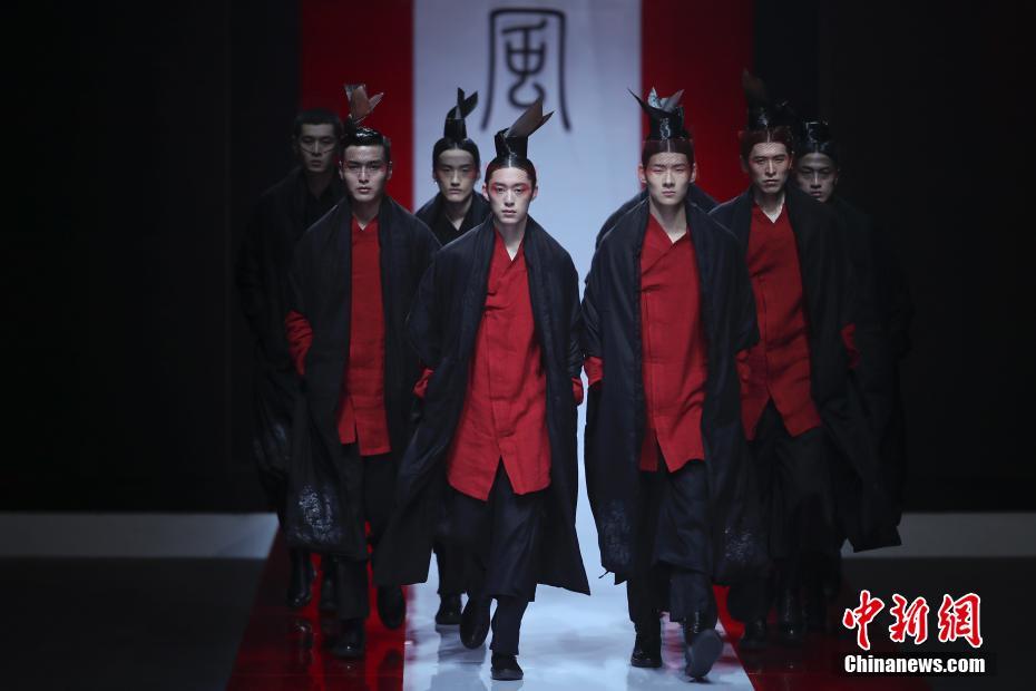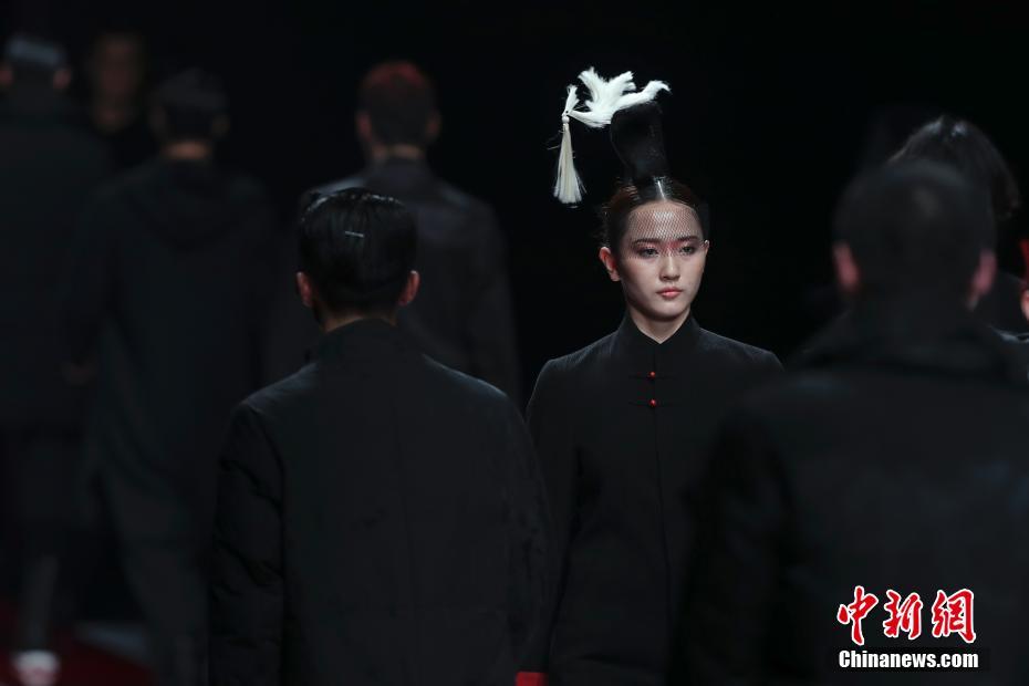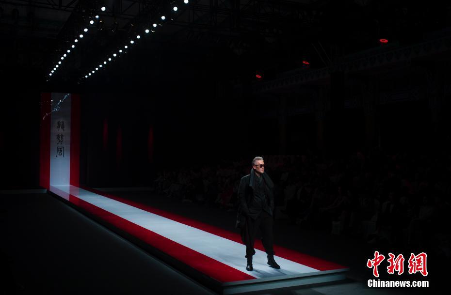 3月27日,模特在T台上展示设计师刘江宏设计的时装。当日,龙剪风・刘江宏时装作品发布会在北京举行。设计师将中国传统文化,结合时代元素、流行趋势融入到每一件设计中,意在剪出时尚潮流中国风。 中新社记者 盛佳鹏 摄