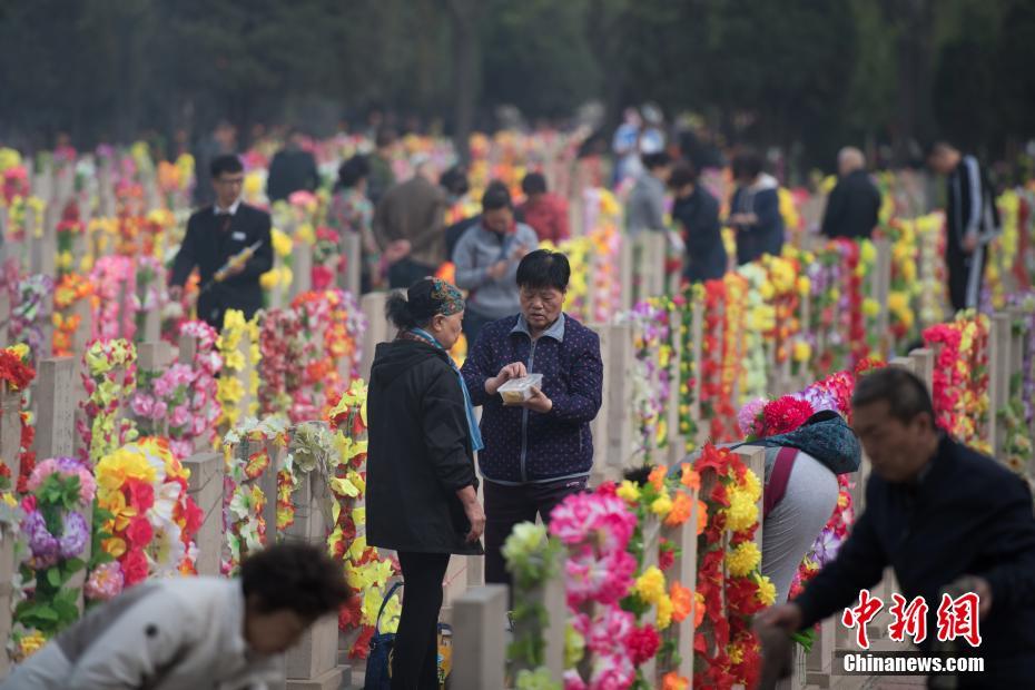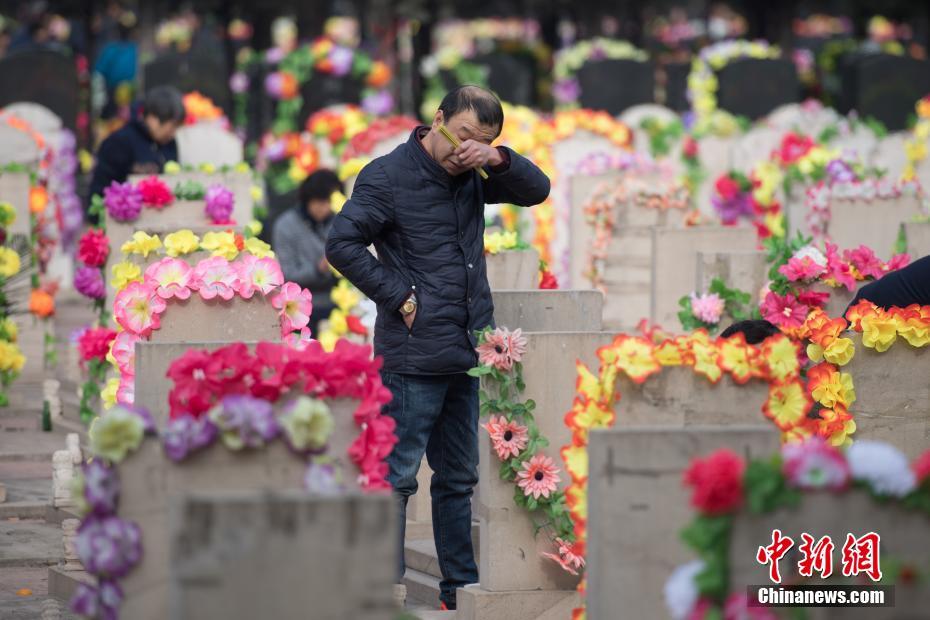 4月3日,山西省太原市,大批民众在墓园祭奠亲人。随着清明节临近,中国各地墓园迎来祭扫高峰。 韦亮 摄
