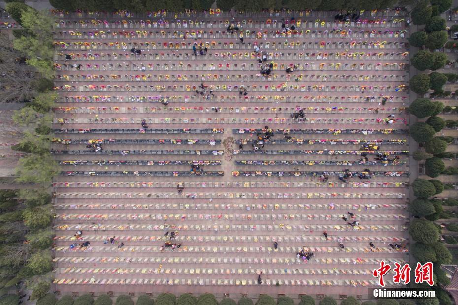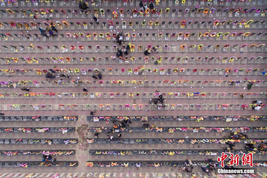 俯瞰墓园,大批民众在祭奠亲人。 韦亮 摄
